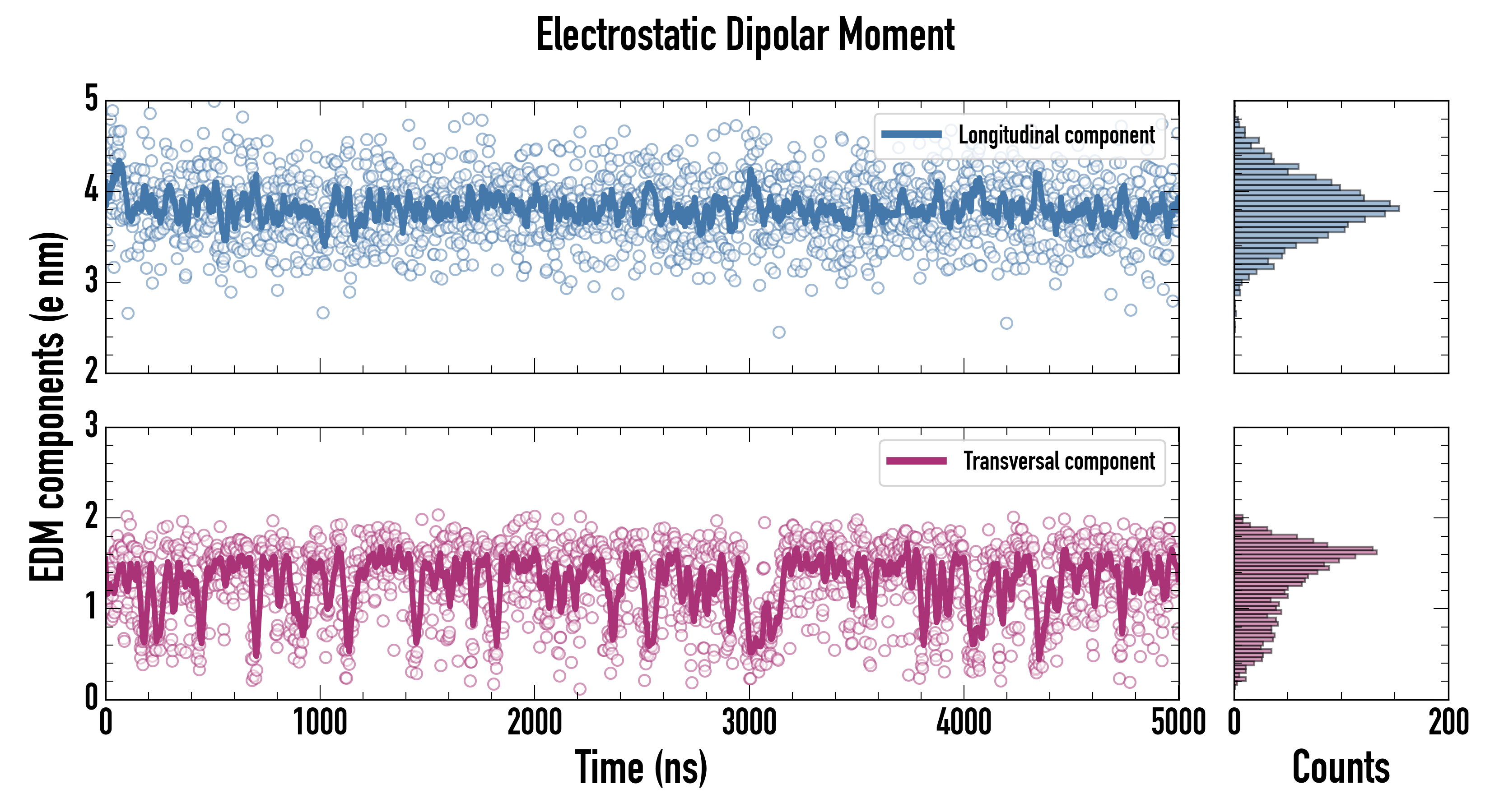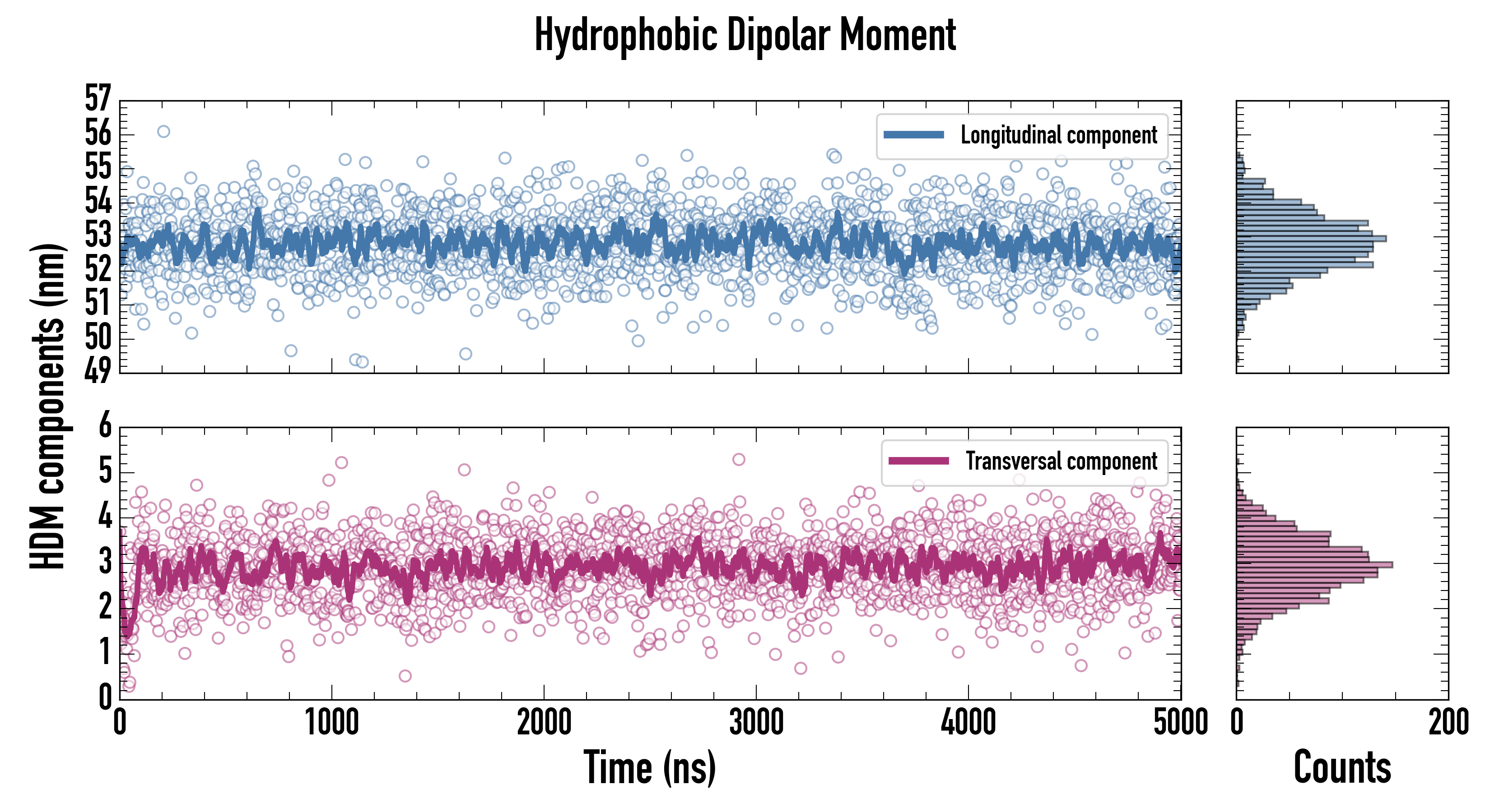 Longitudinal (e nm): 4.76 Transversal (e nm): 1.59 Hydrophobic Dipolar Moment (nm): 55.3