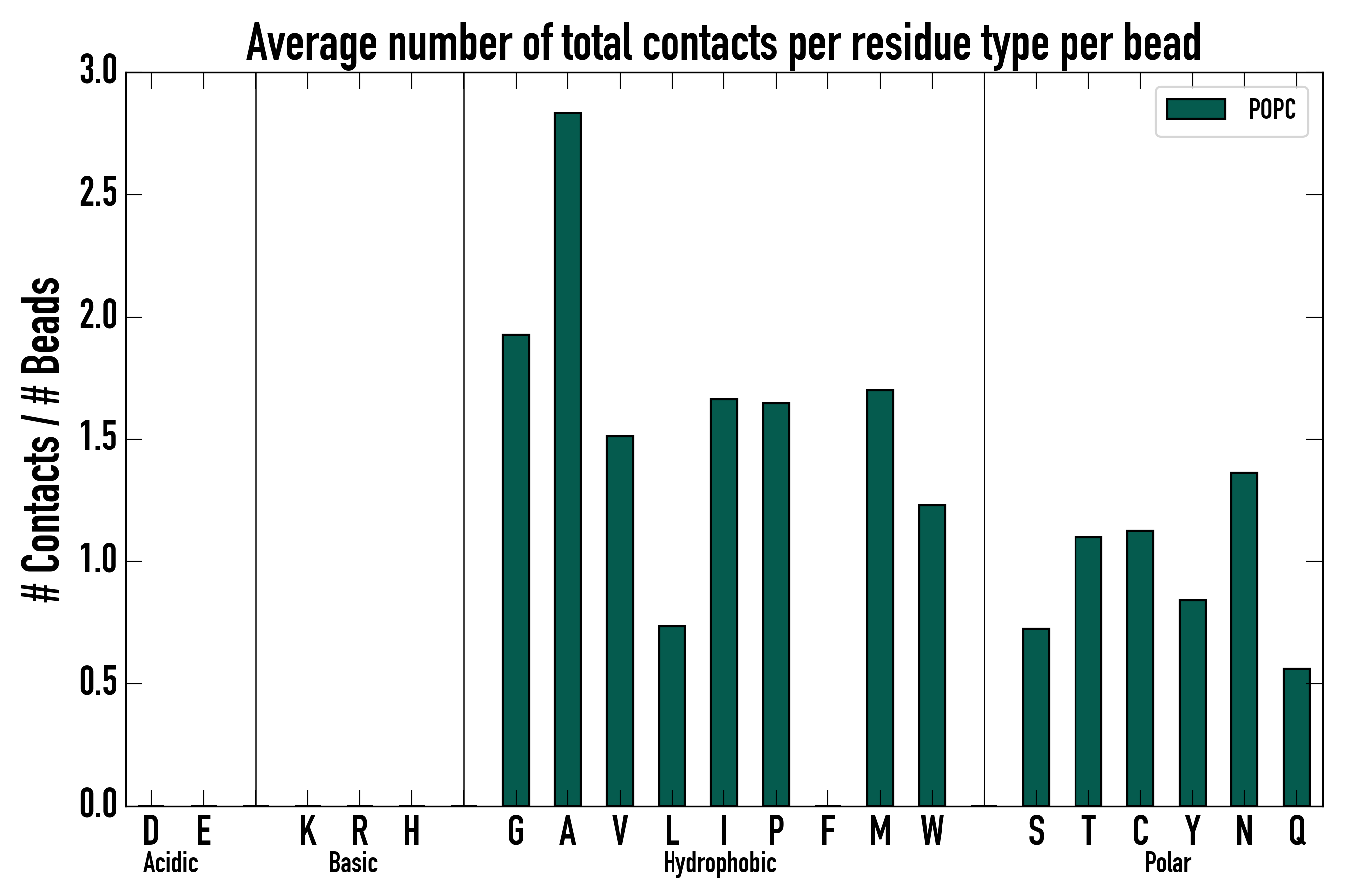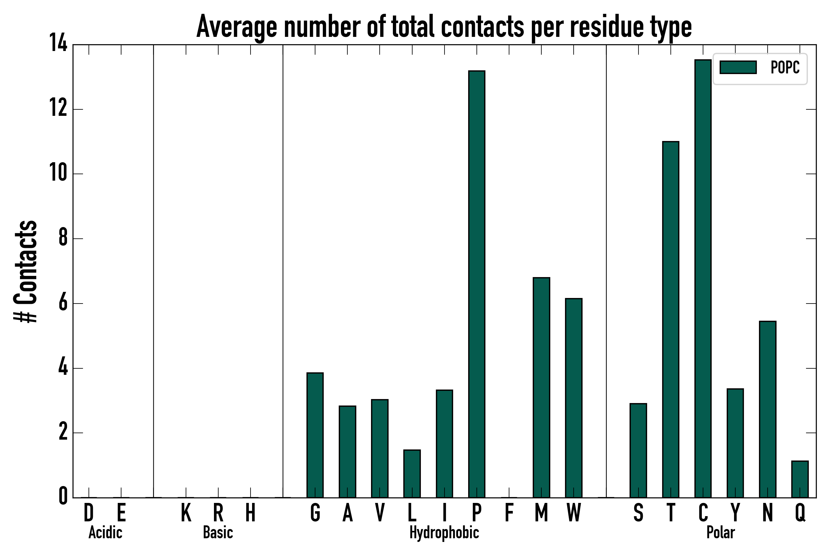 Number of total contacts per residue type:
