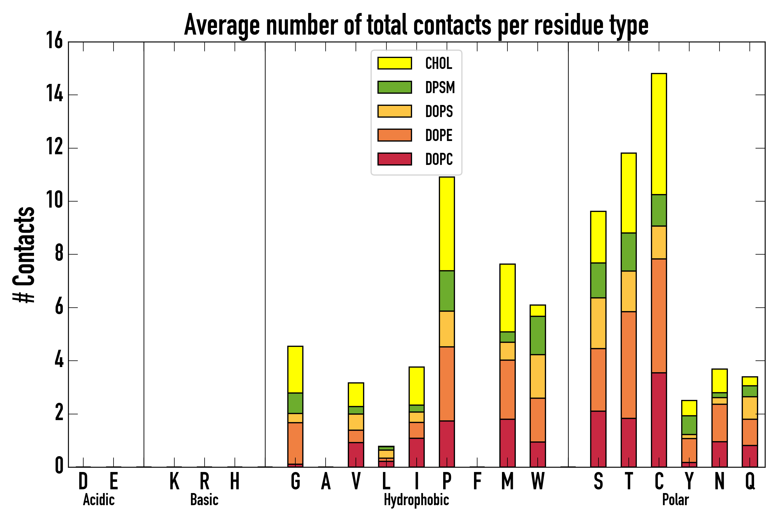 Number of total contacts per residue type: