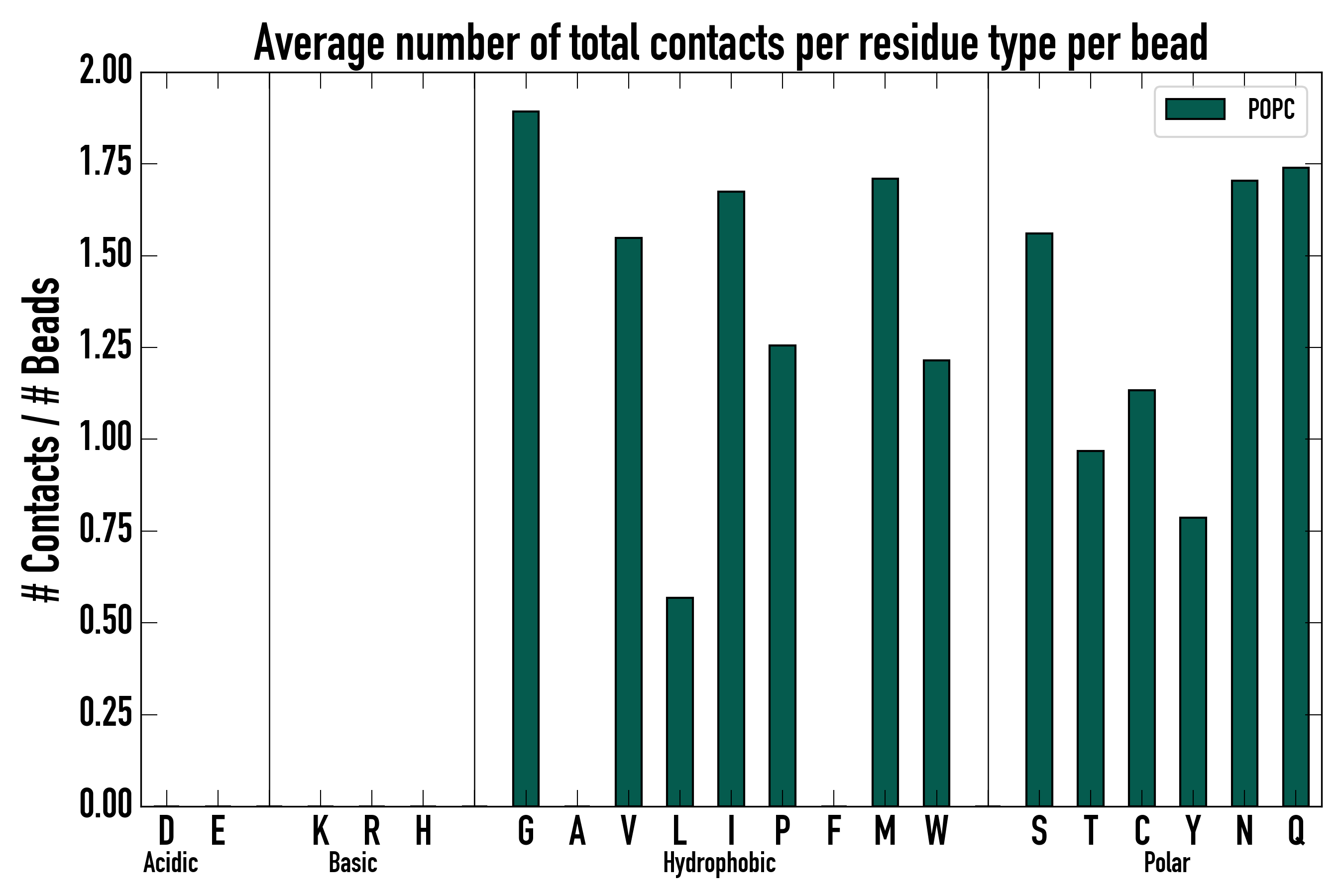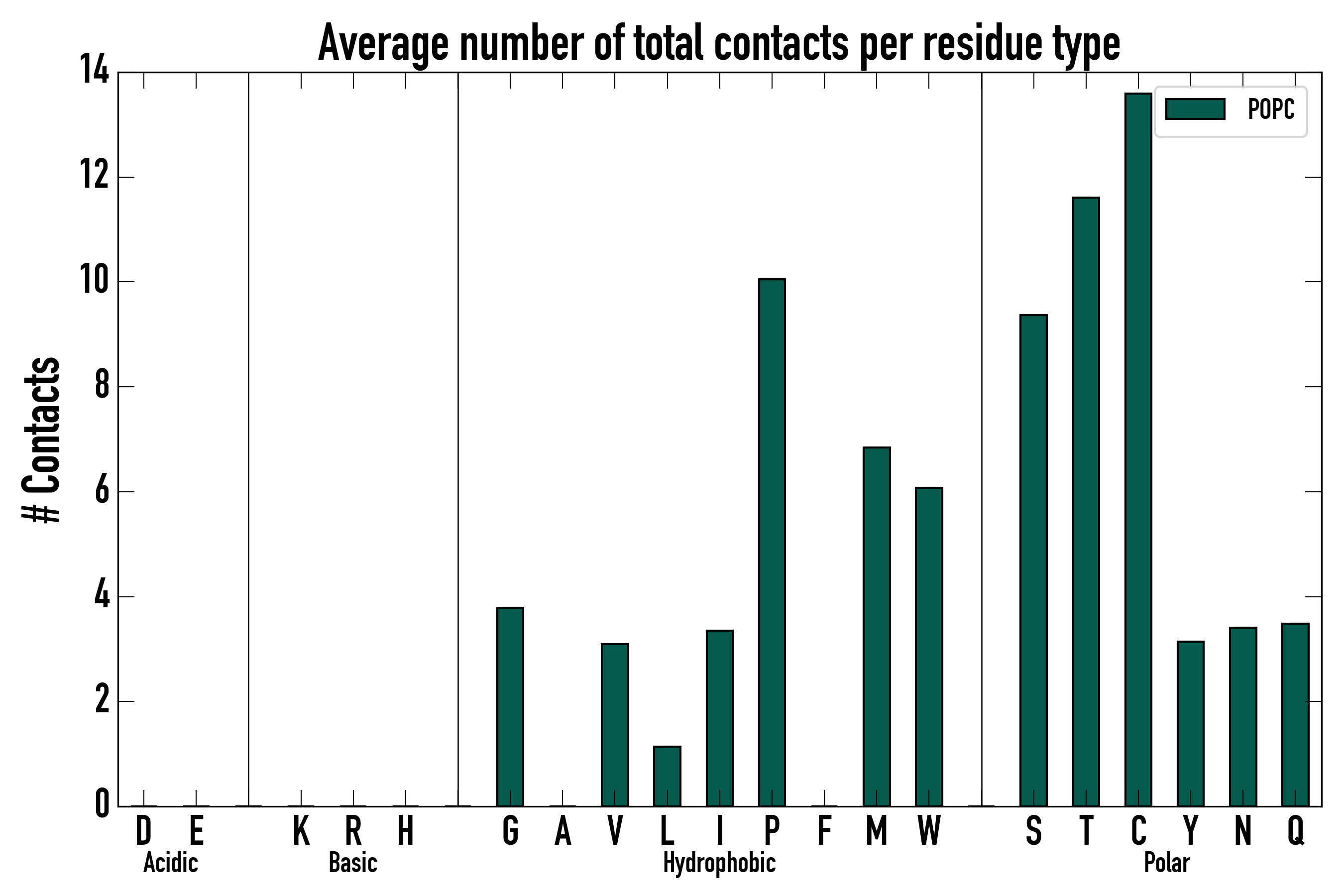 Number of total contacts per residue type: