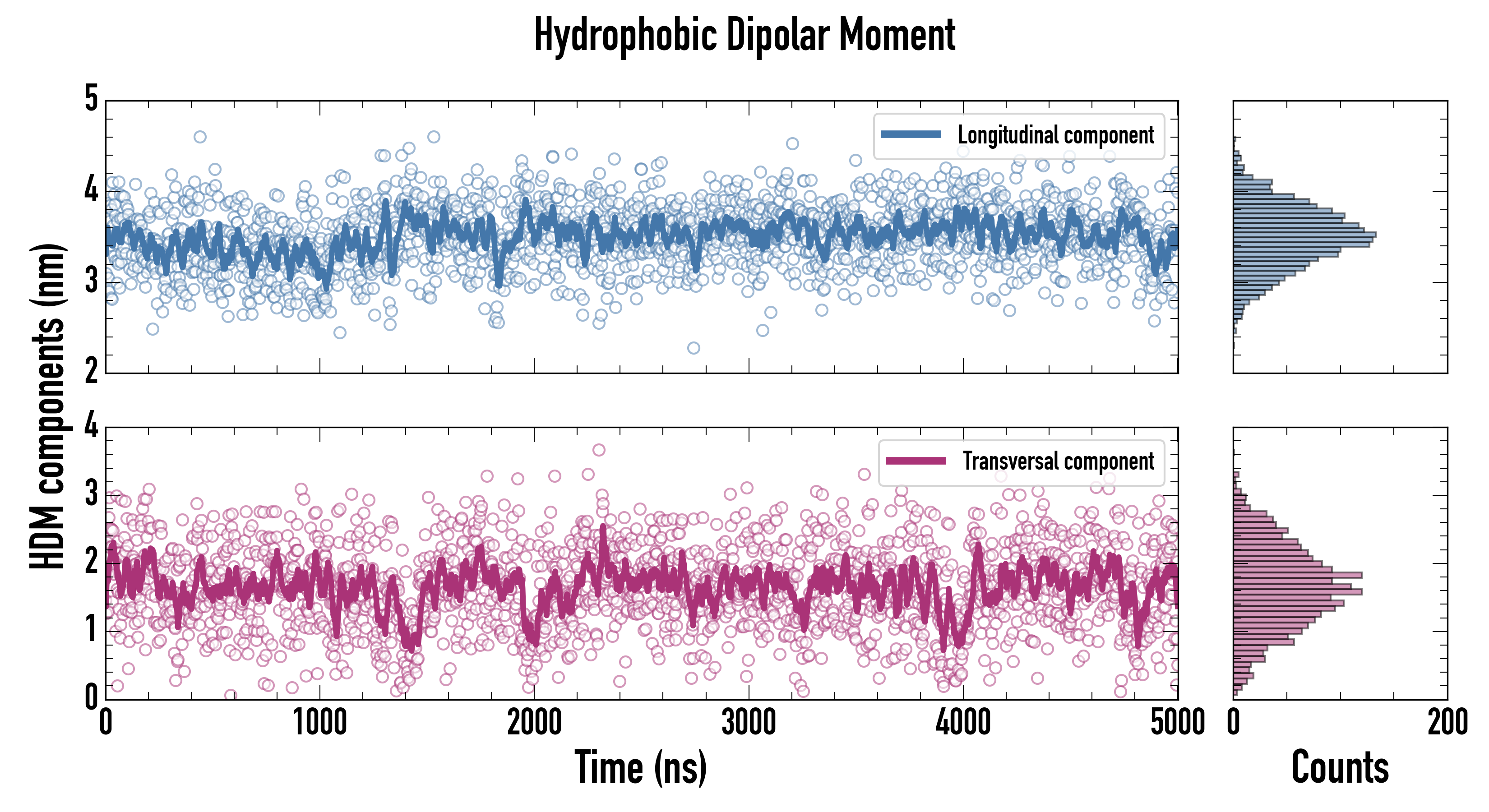 Longitudinal (e nm): 3.03 Transversal (e nm): 1.28 Hydrophobic Dipolar Moment (nm): 3.9