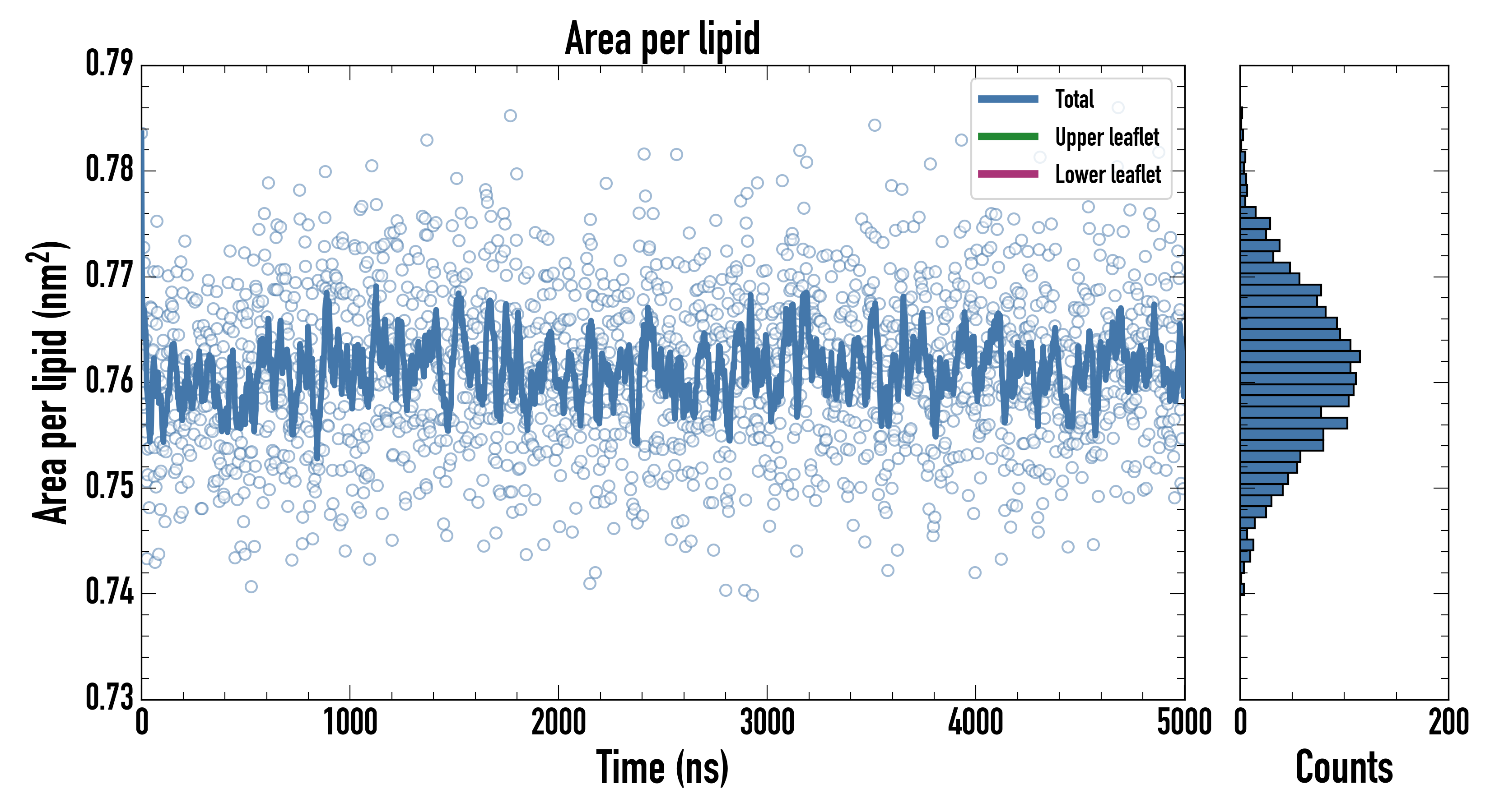 Upper leaflet (nm2): 0.76149 ± 0.00073