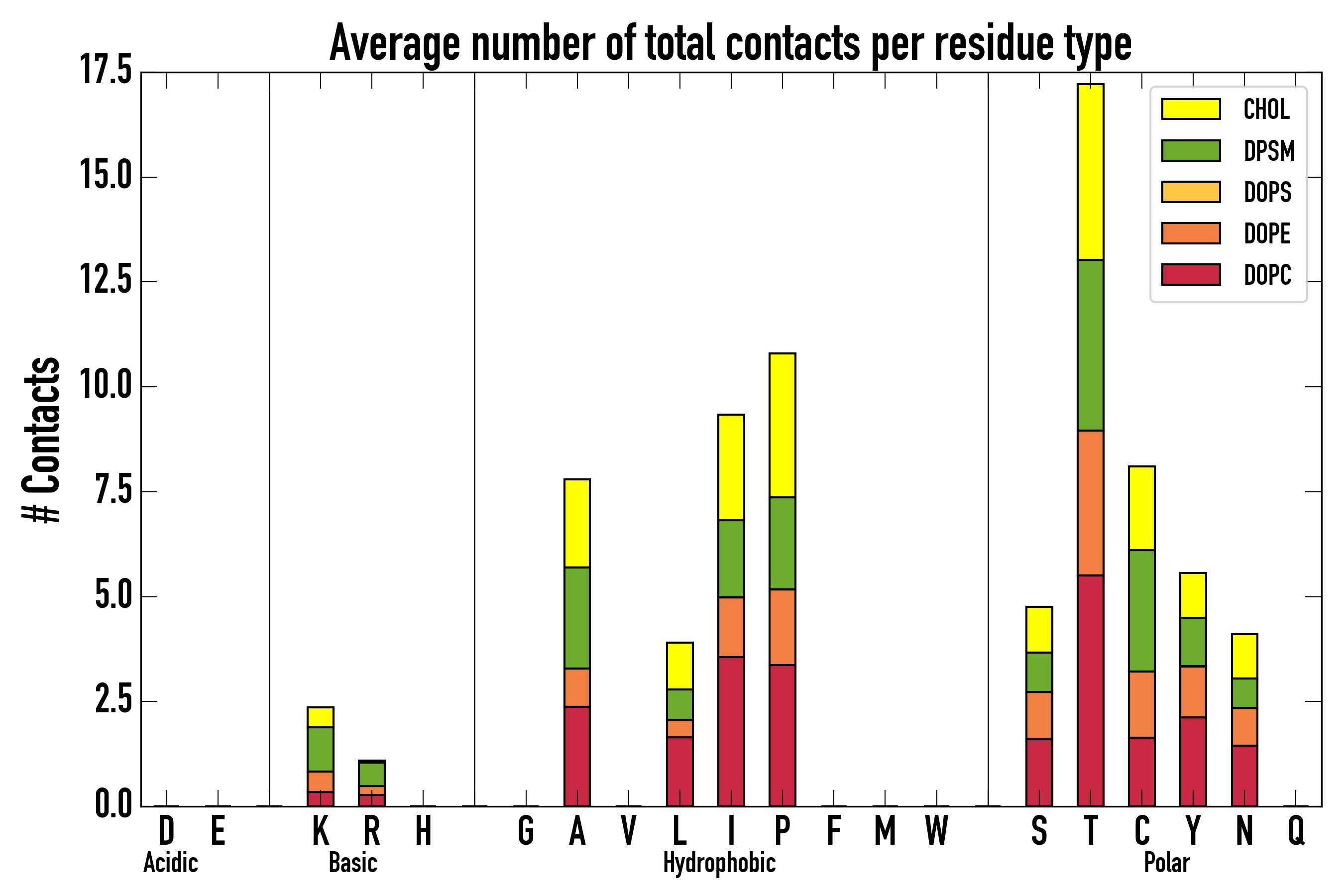 Number of total contacts per residue type: