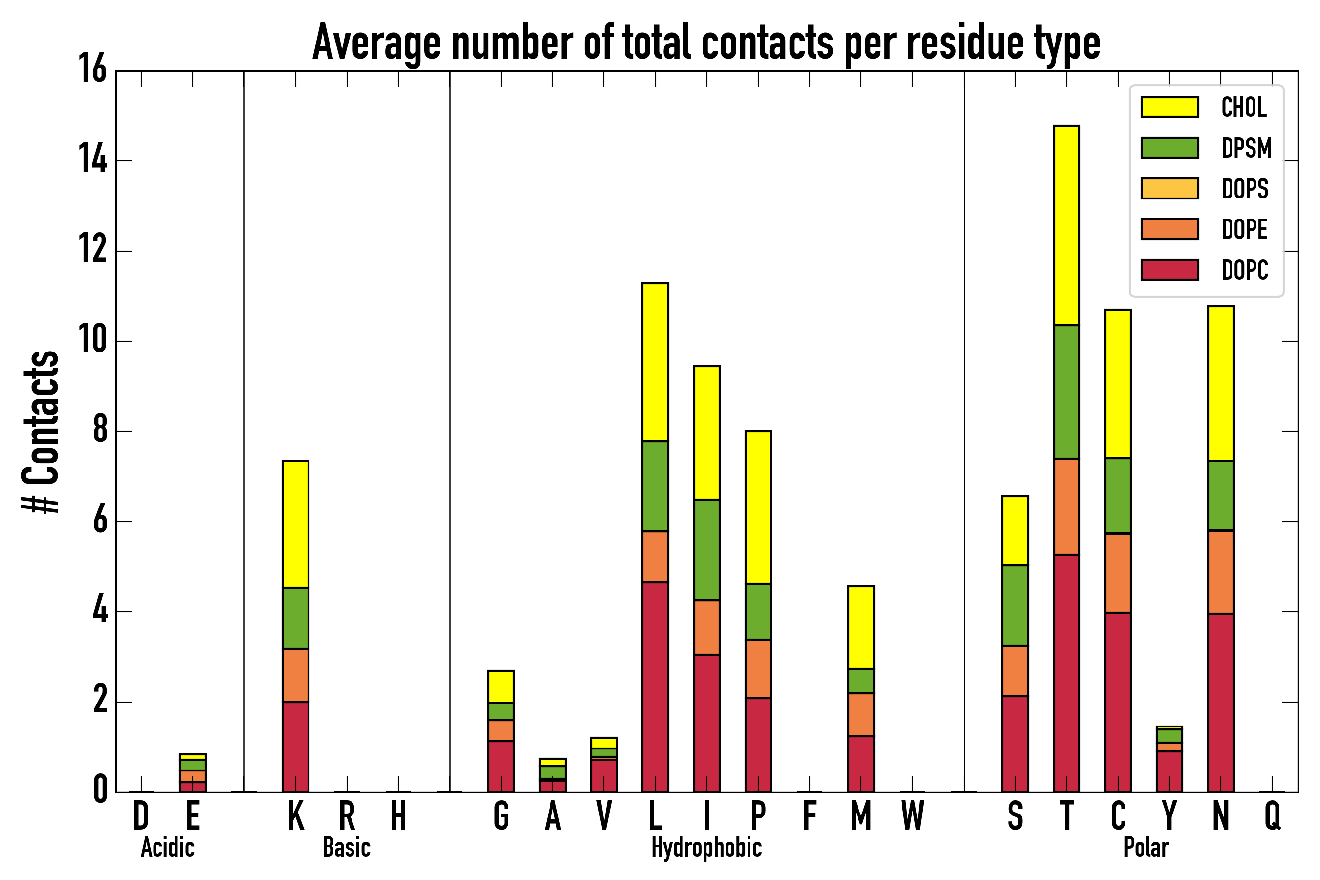 Number of total contacts per residue type: