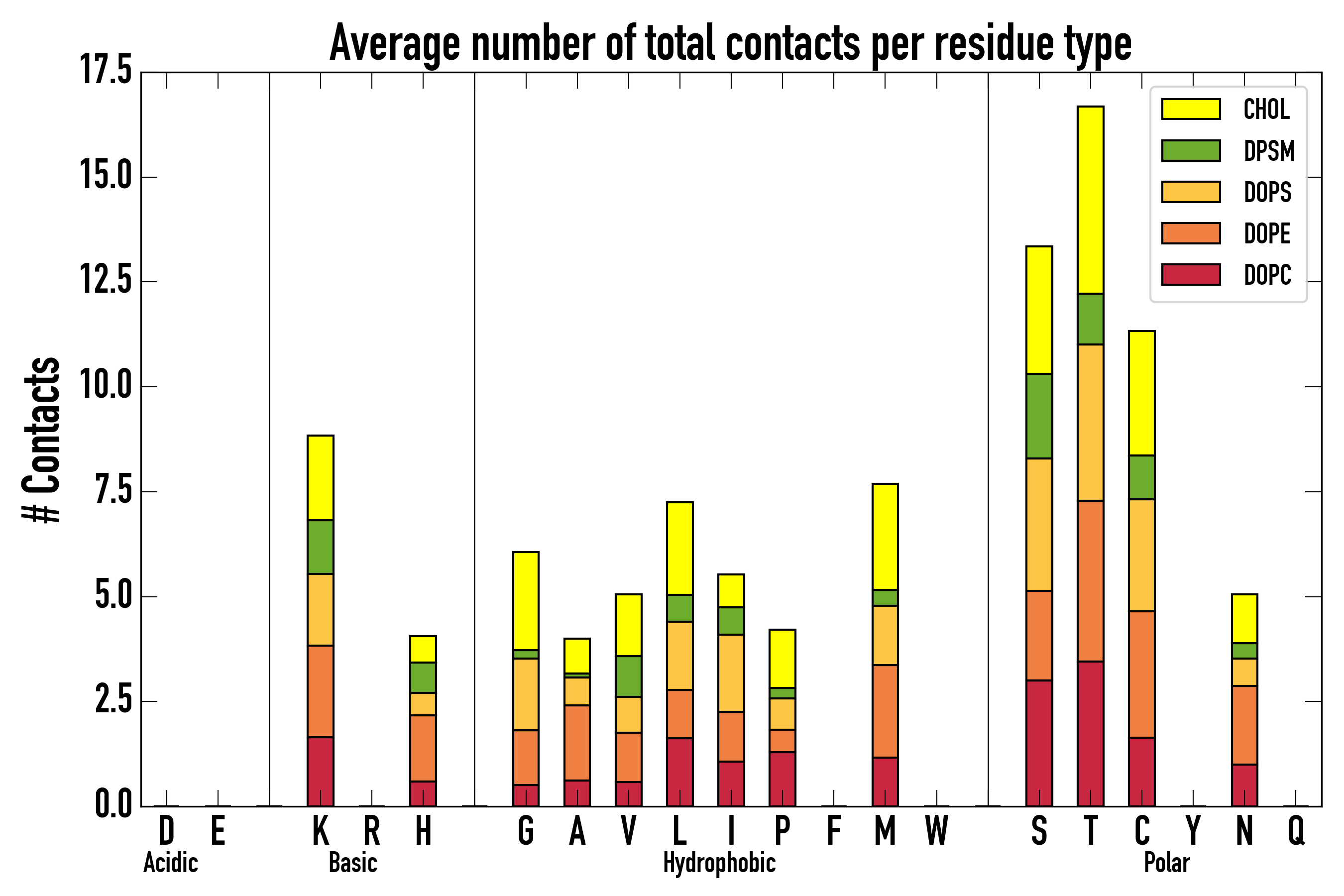 Number of total contacts per residue type: