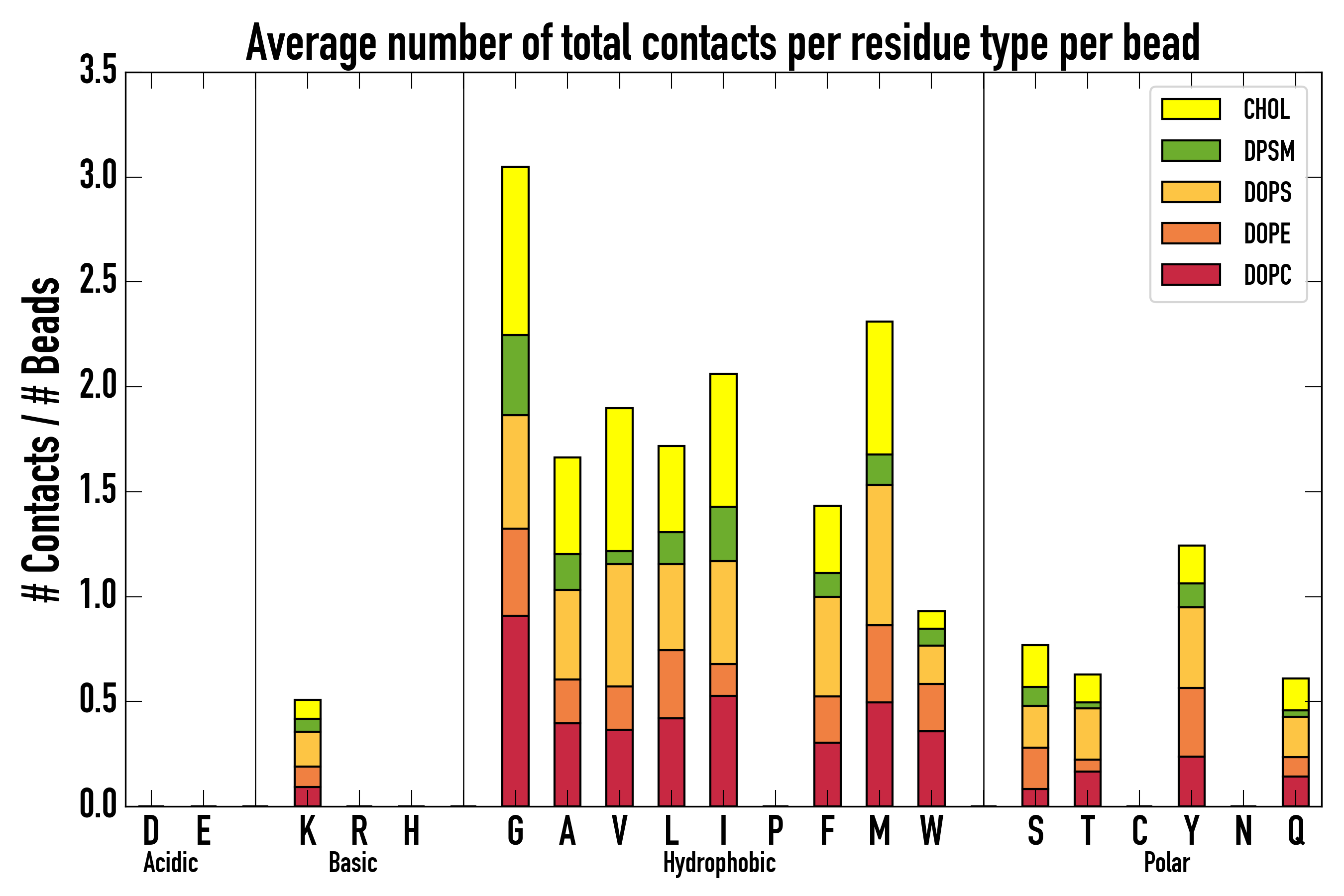 Number of total contacts per residue type: