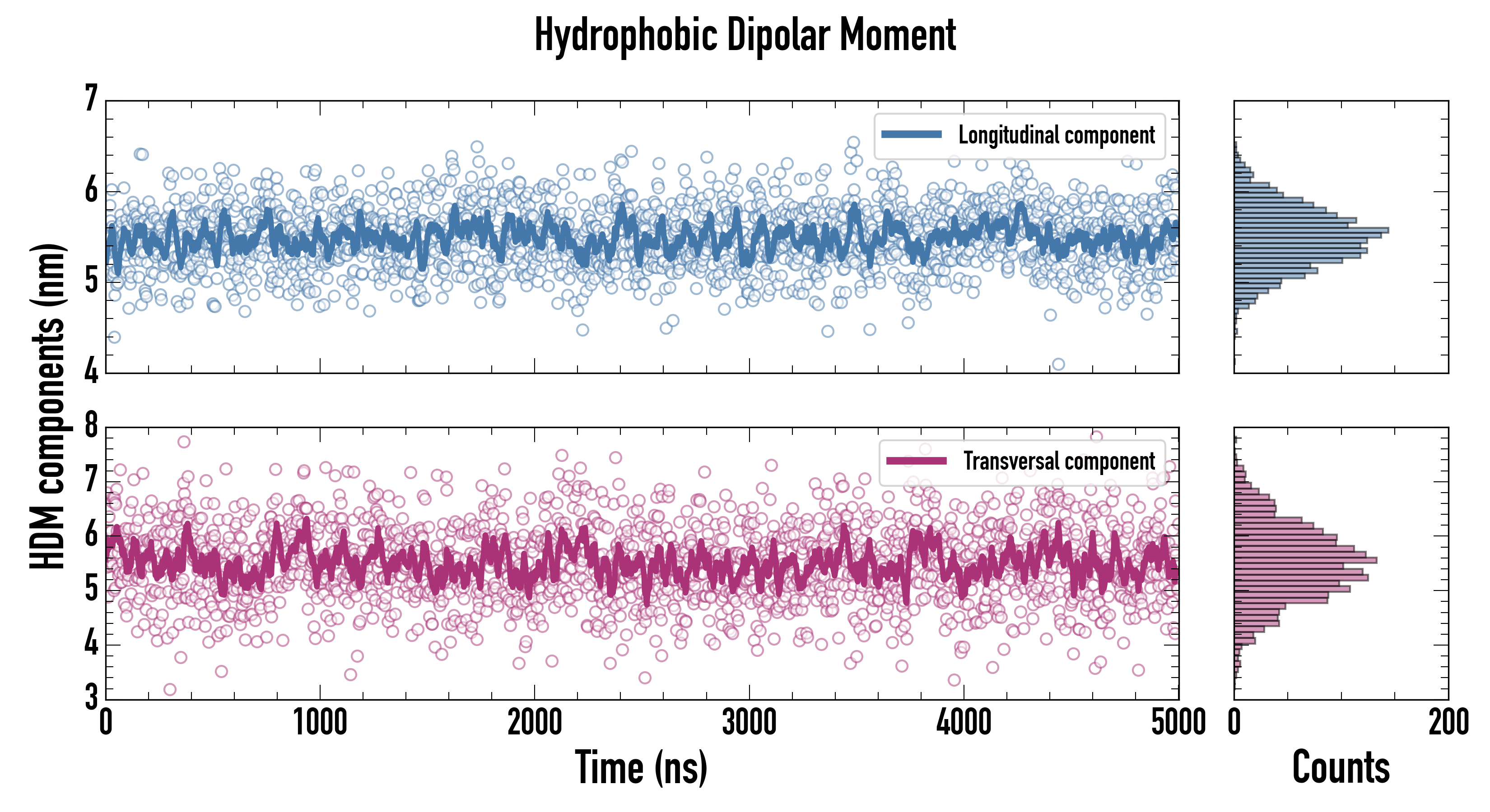 Longitudinal (e nm): 3.34 Transversal (e nm): 2.24 Hydrophobic Dipolar Moment (nm): 8.43