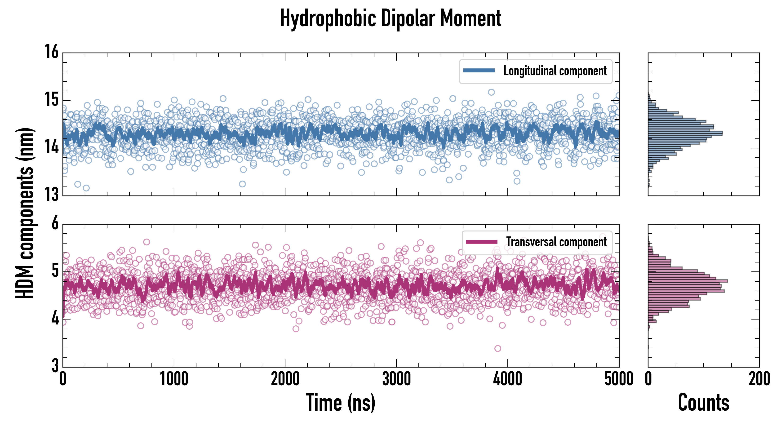 Longitudinal (e nm): 0.36 Transversal (e nm): 0.93 Hydrophobic Dipolar Moment (nm): 15.8