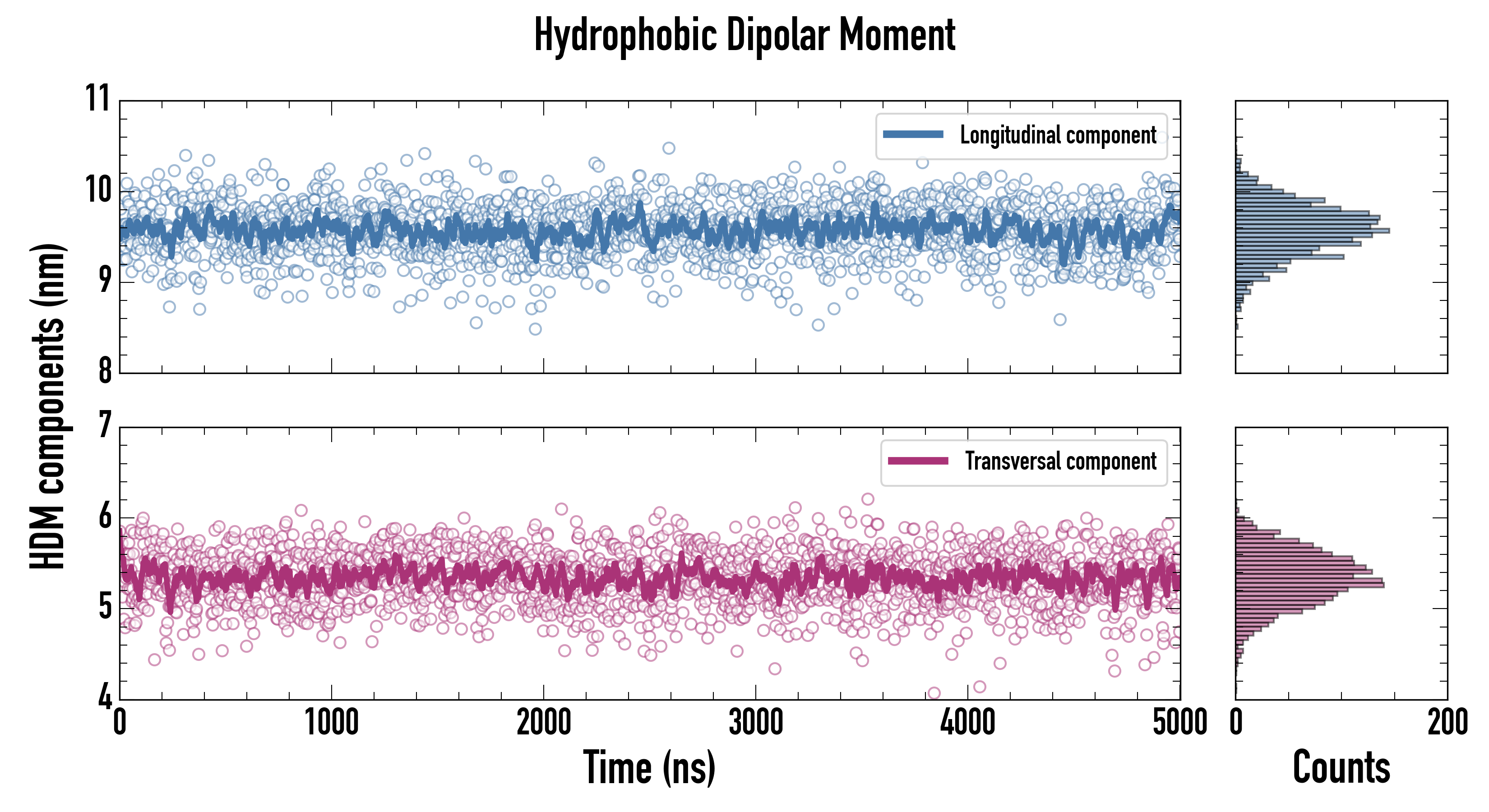 Longitudinal (e nm): 2.95 Transversal (e nm): 0.01 Hydrophobic Dipolar Moment (nm): 11.5