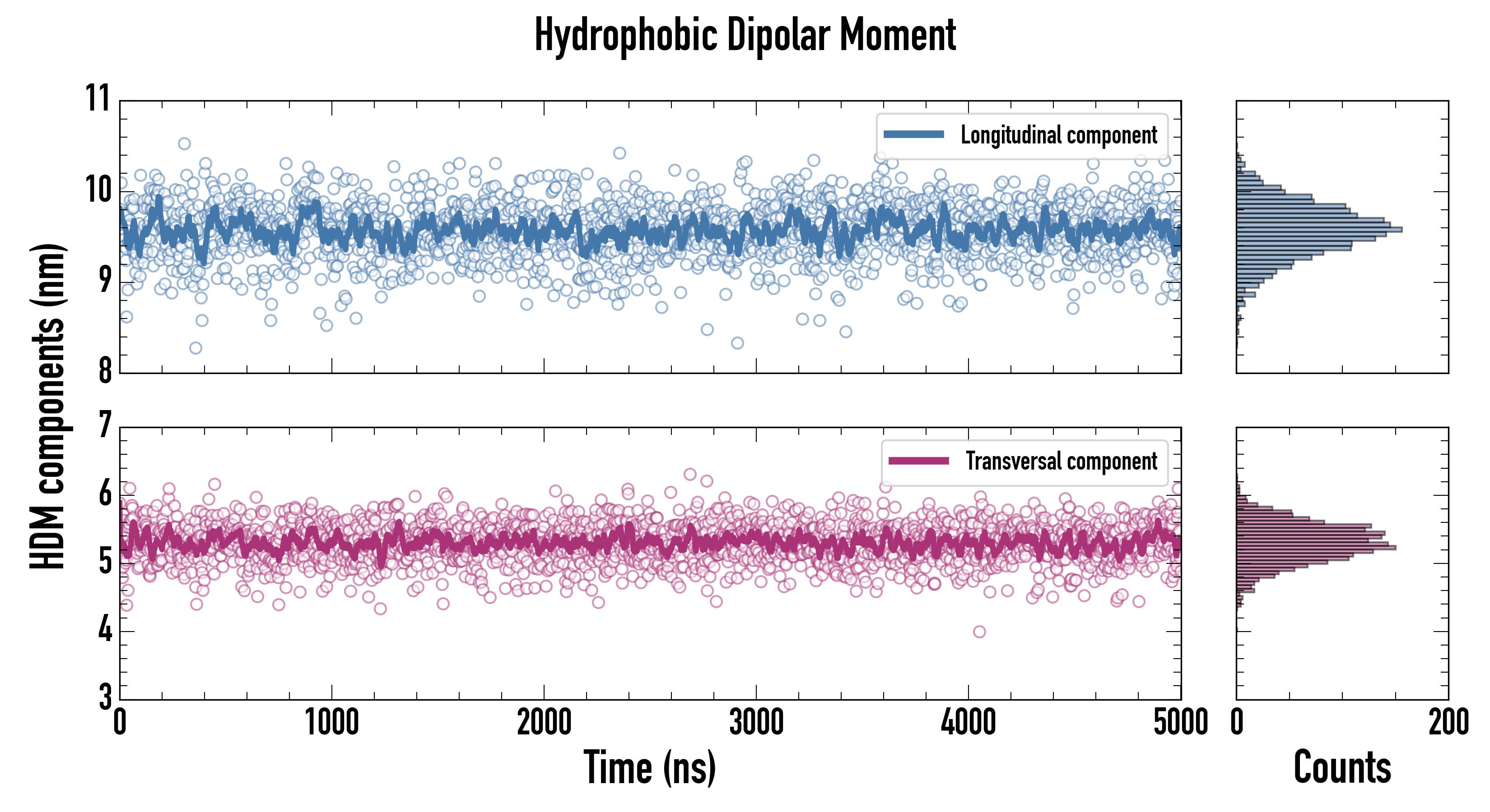 Longitudinal (e nm): 2.95 Transversal (e nm): 0.01 Hydrophobic Dipolar Moment (nm): 11.5