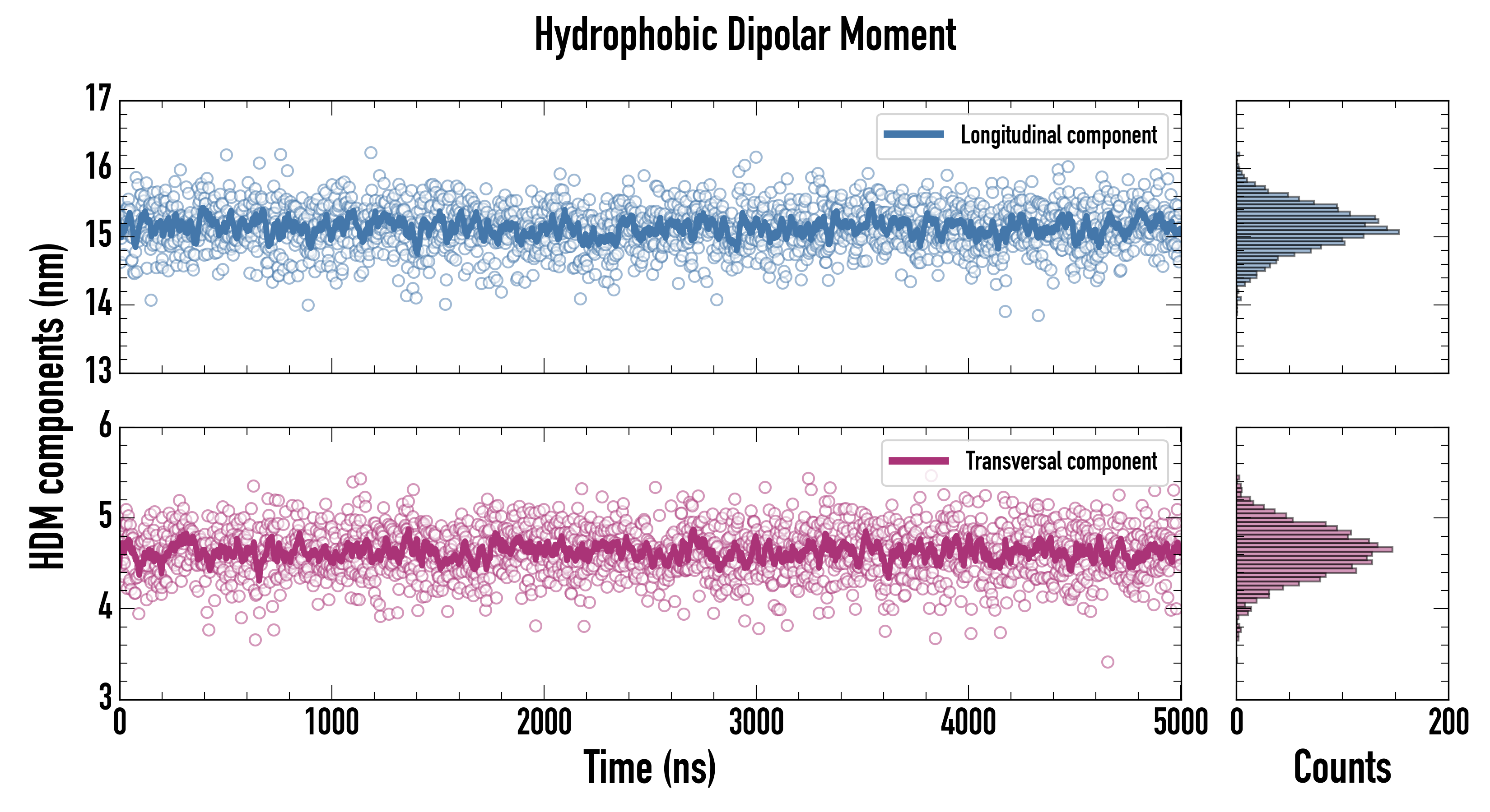 Longitudinal (e nm): 2.97 Transversal (e nm): 0.01 Hydrophobic Dipolar Moment (nm): 16.5