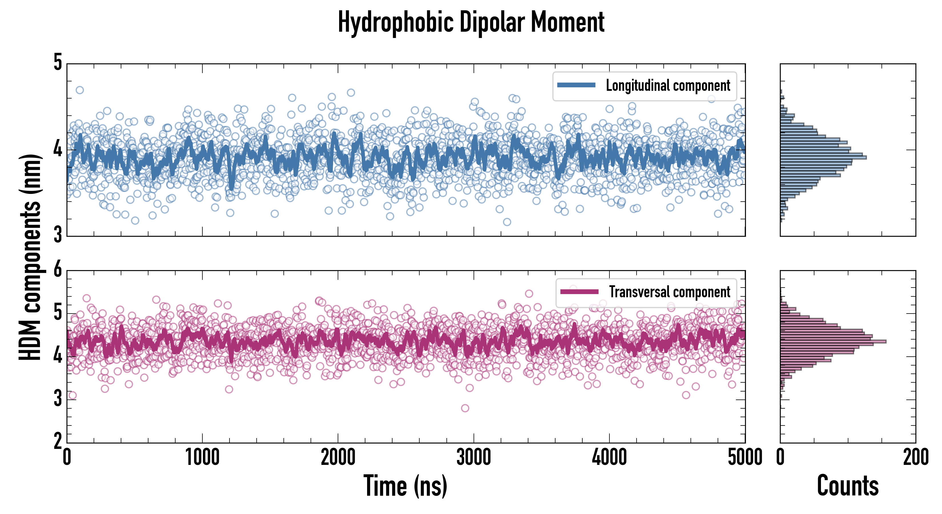 Longitudinal (e nm): 4.9 Transversal (e nm): 1.04 Hydrophobic Dipolar Moment (nm): 6.23