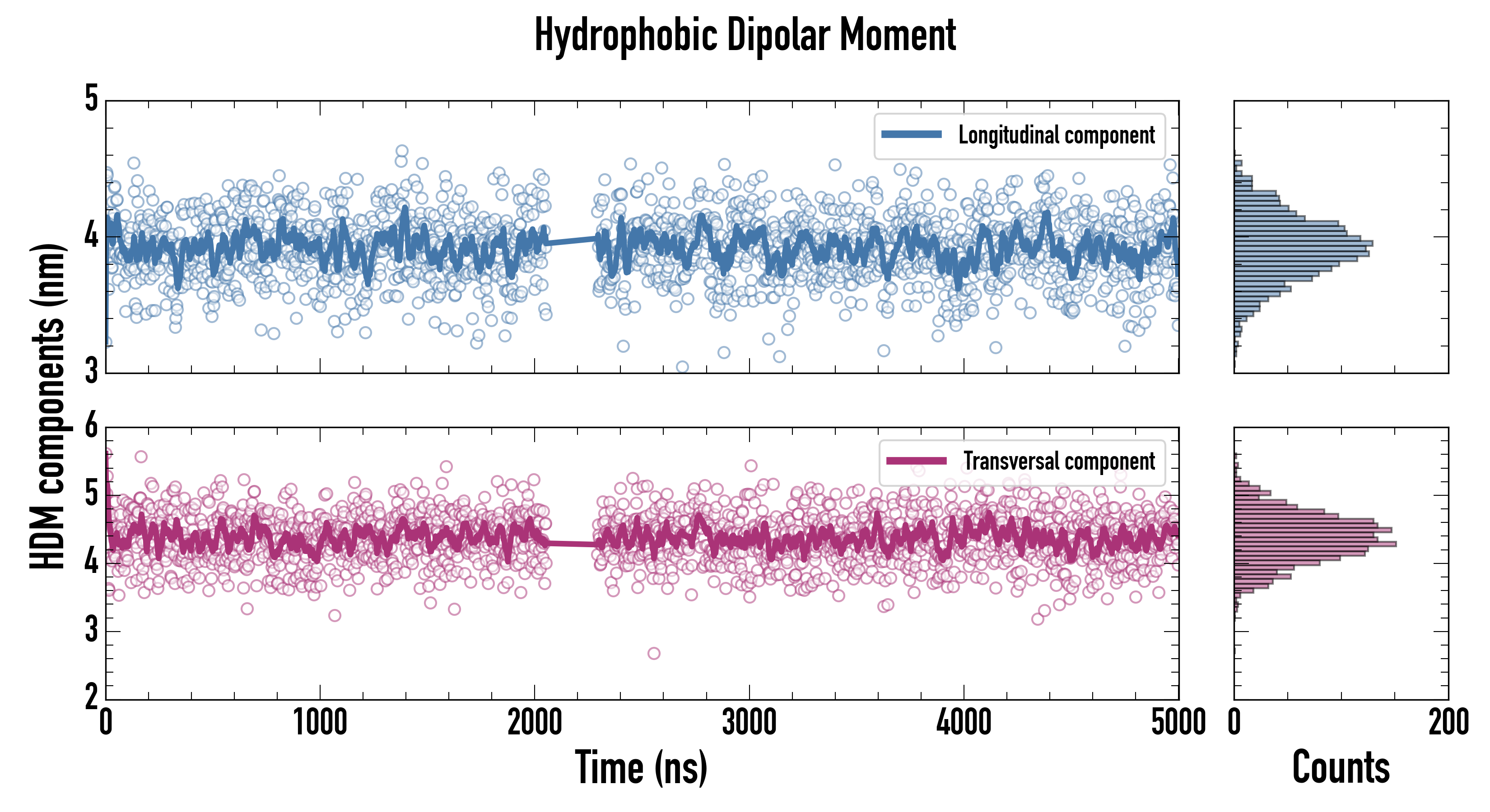 Longitudinal (e nm): 4.9 Transversal (e nm): 1.04 Hydrophobic Dipolar Moment (nm): 6.23