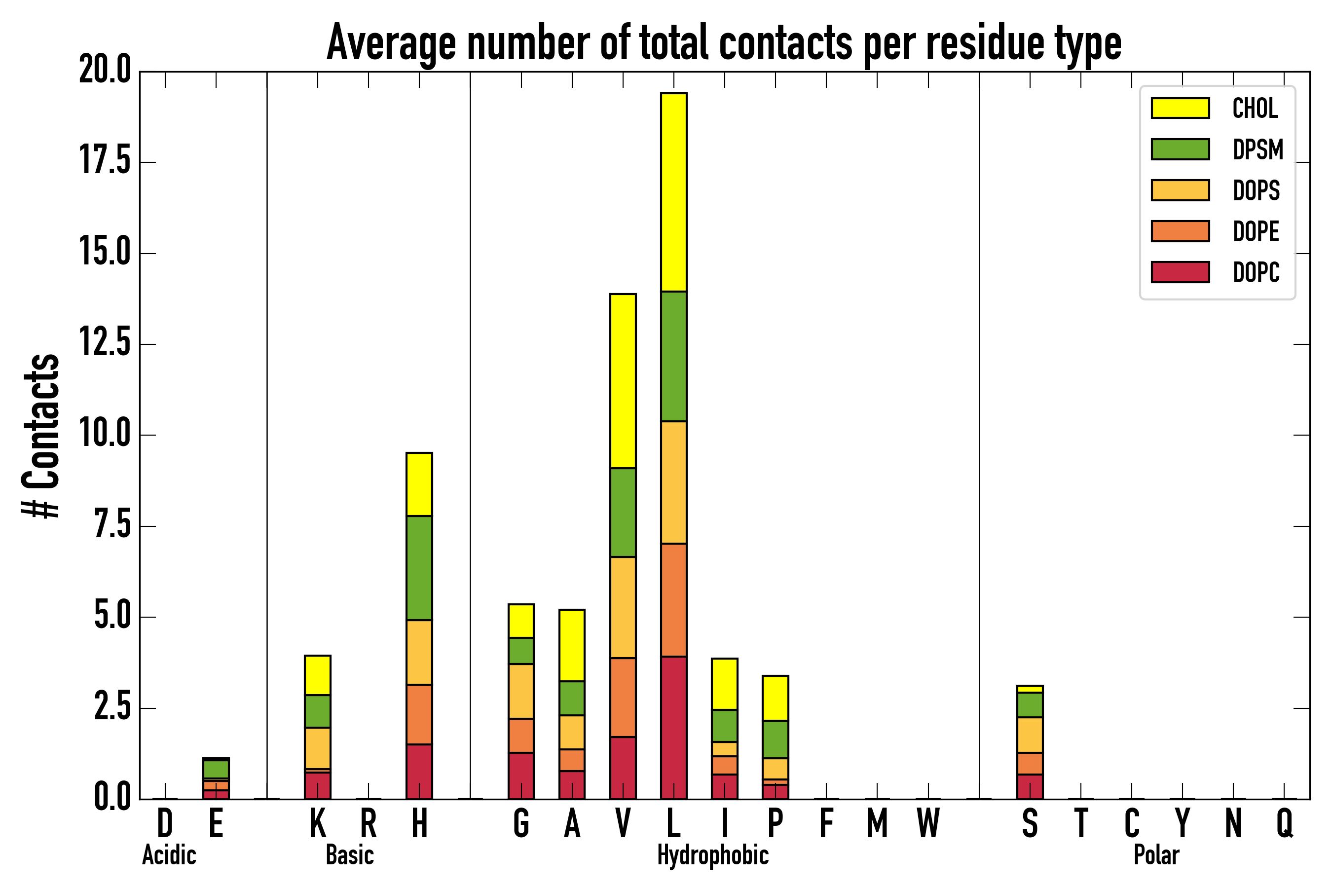 Number of total contacts per residue type: