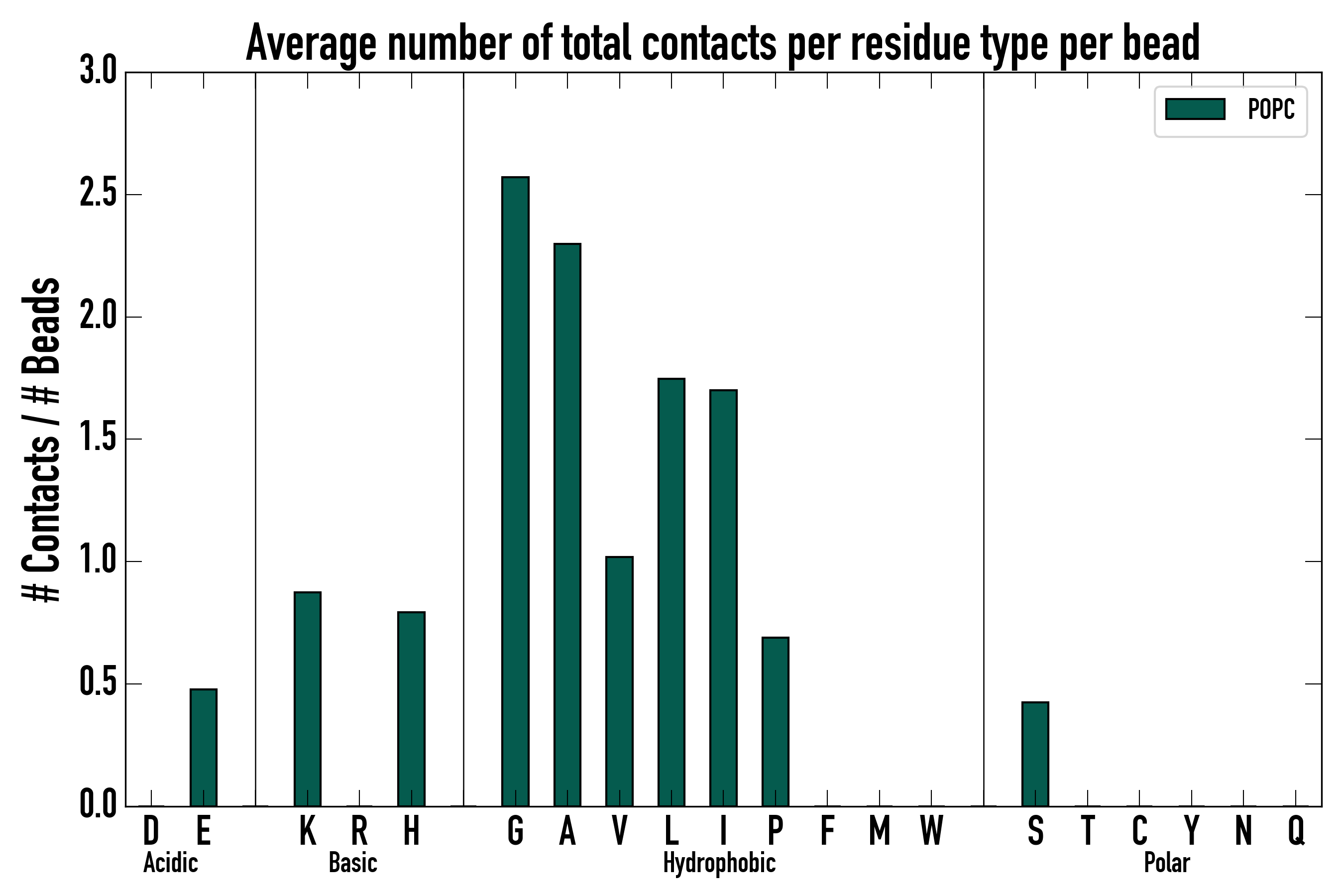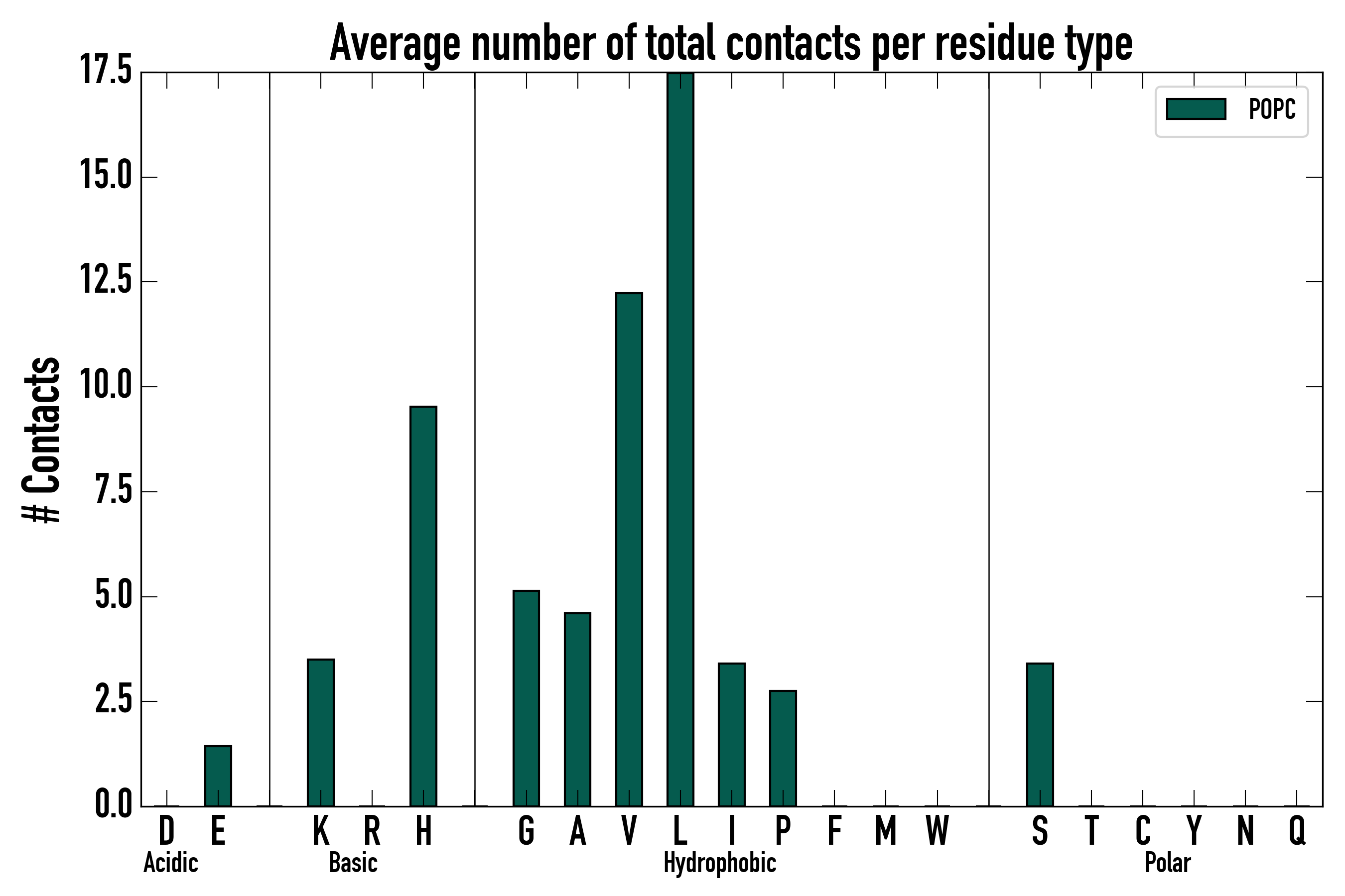 Number of total contacts per residue type: