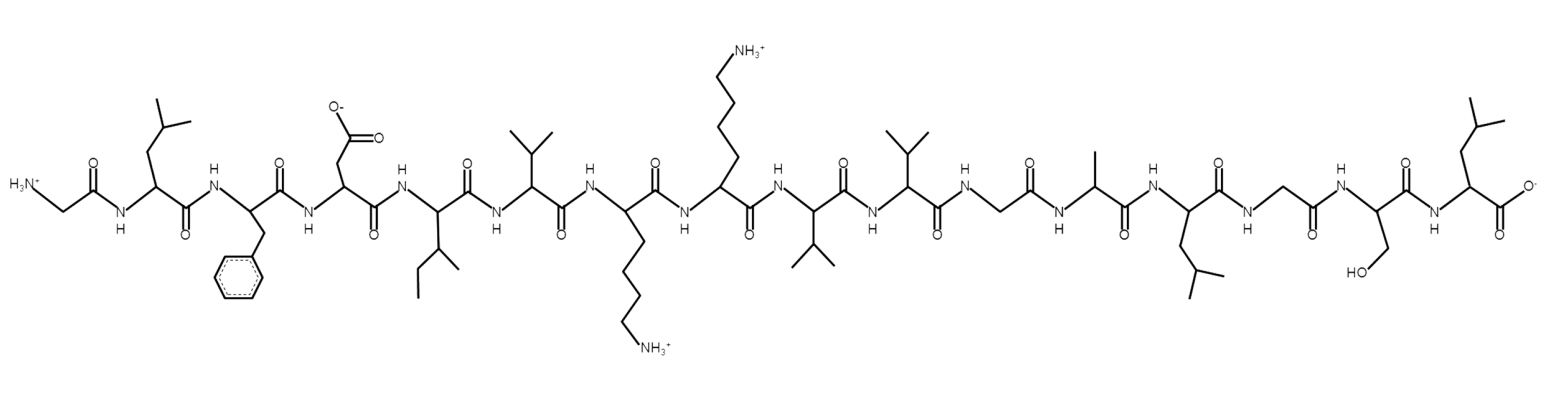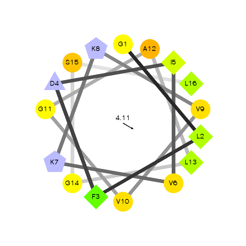 By amino acid: Basic: 2 Acidic: 1 Hydrophobic: 12 Polar: 1 Electrostatic Dipolar Moment (e nm): 2.54