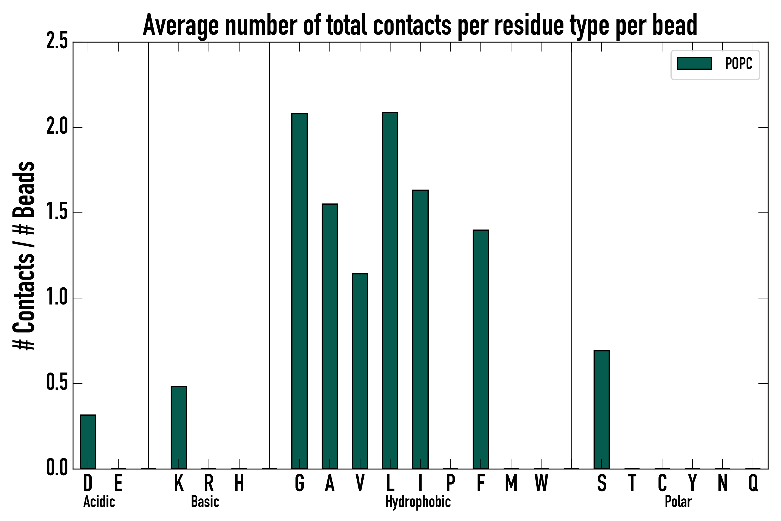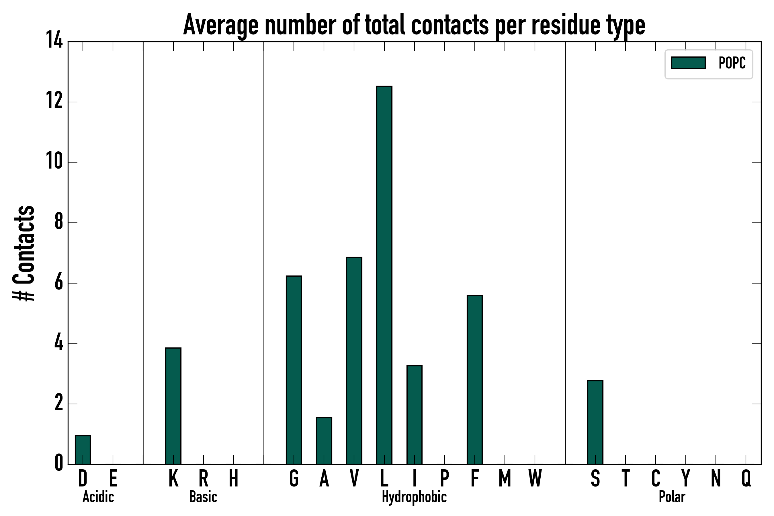 Number of total contacts per residue type: