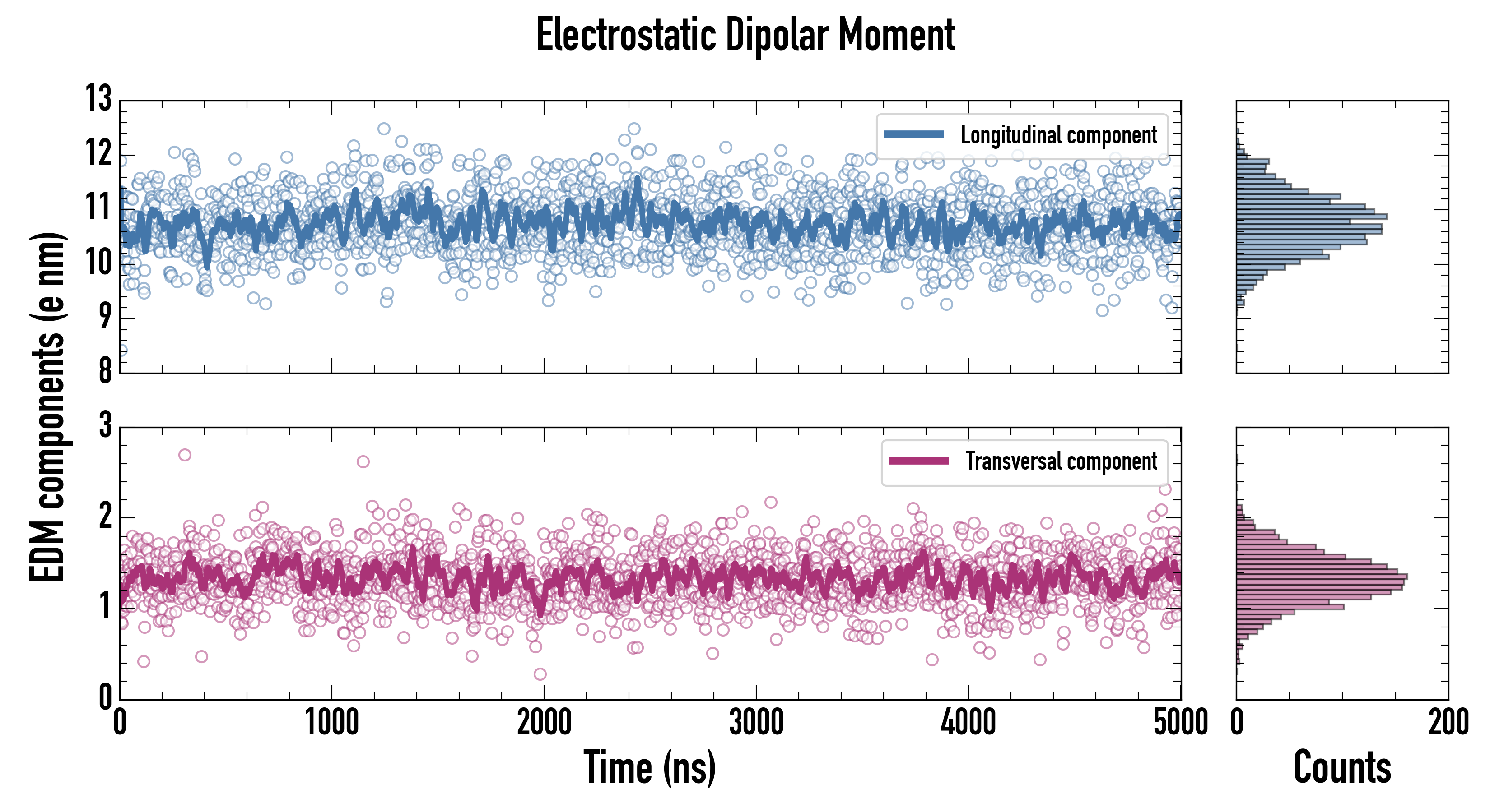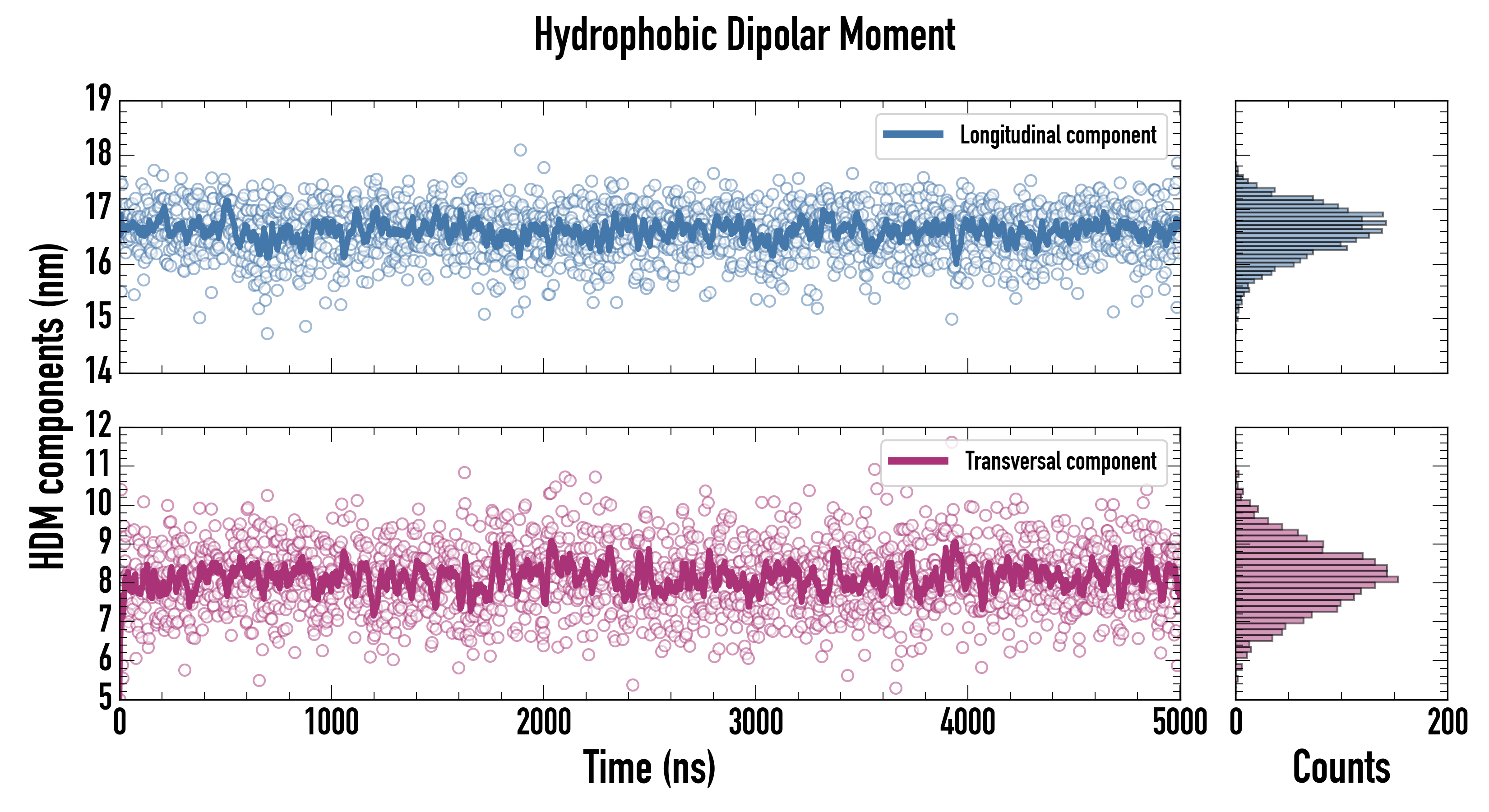 Longitudinal (e nm): 12.9 Transversal (e nm): 1.23 Hydrophobic Dipolar Moment (nm): 18.2