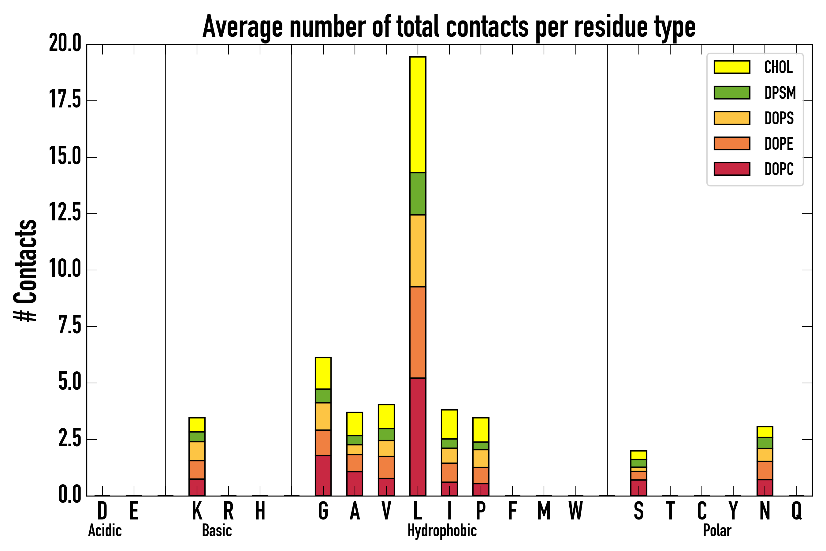 Number of total contacts per residue type:
