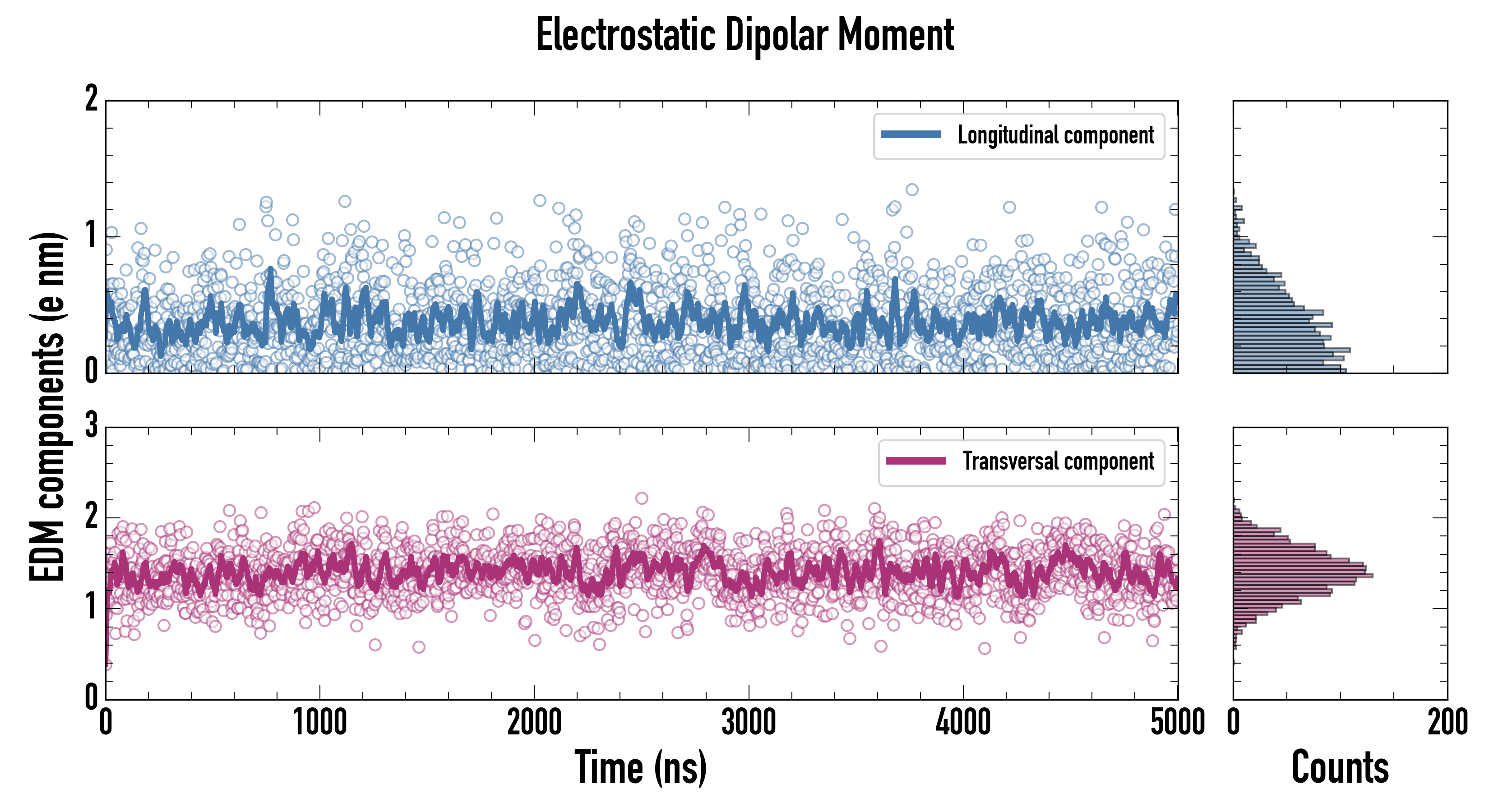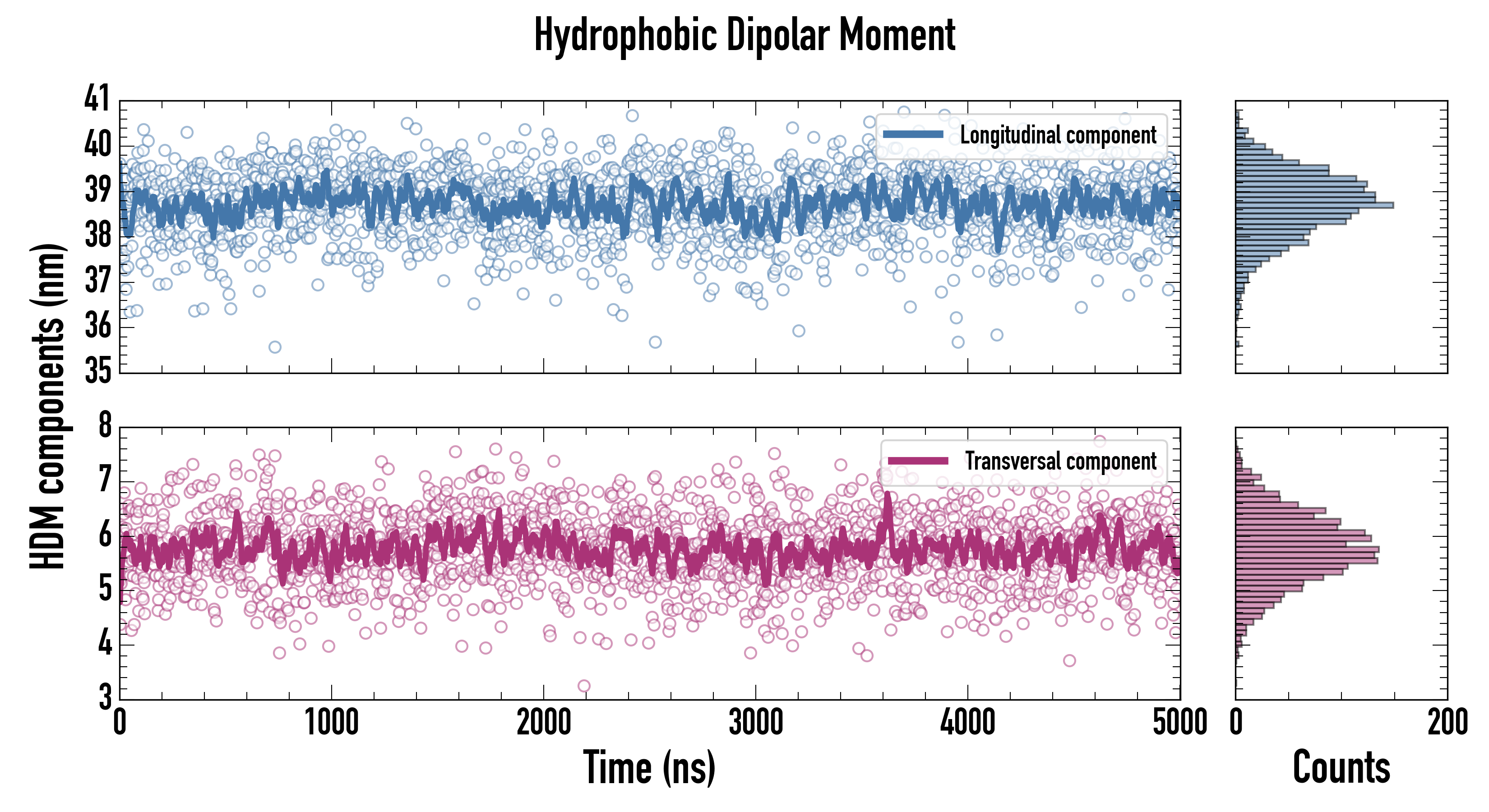 Longitudinal (e nm): 1.51 Transversal (e nm): 0.49 Hydrophobic Dipolar Moment (nm): 41.3