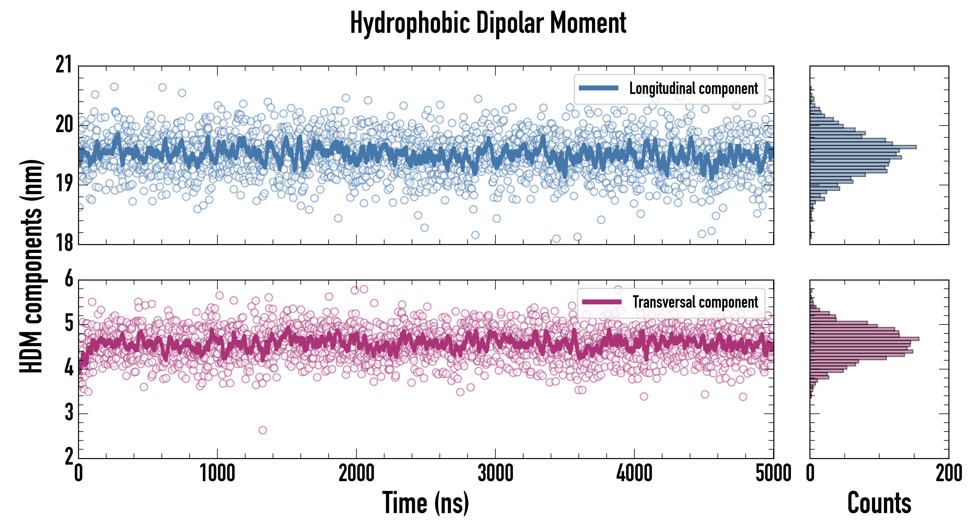Longitudinal (e nm): 2.08 Transversal (e nm): 0.64 Hydrophobic Dipolar Moment (nm): 20.7