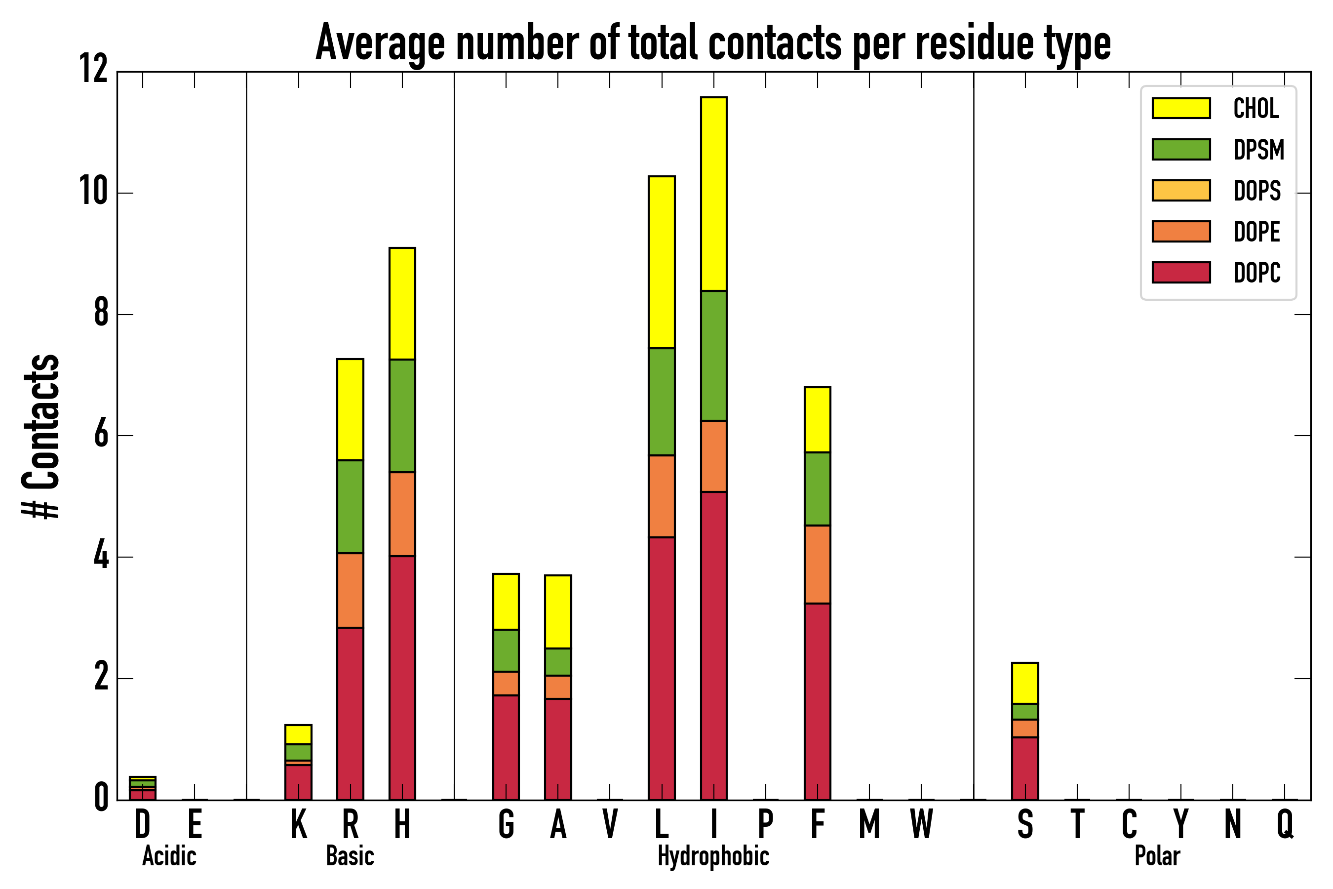 Number of total contacts per residue type: