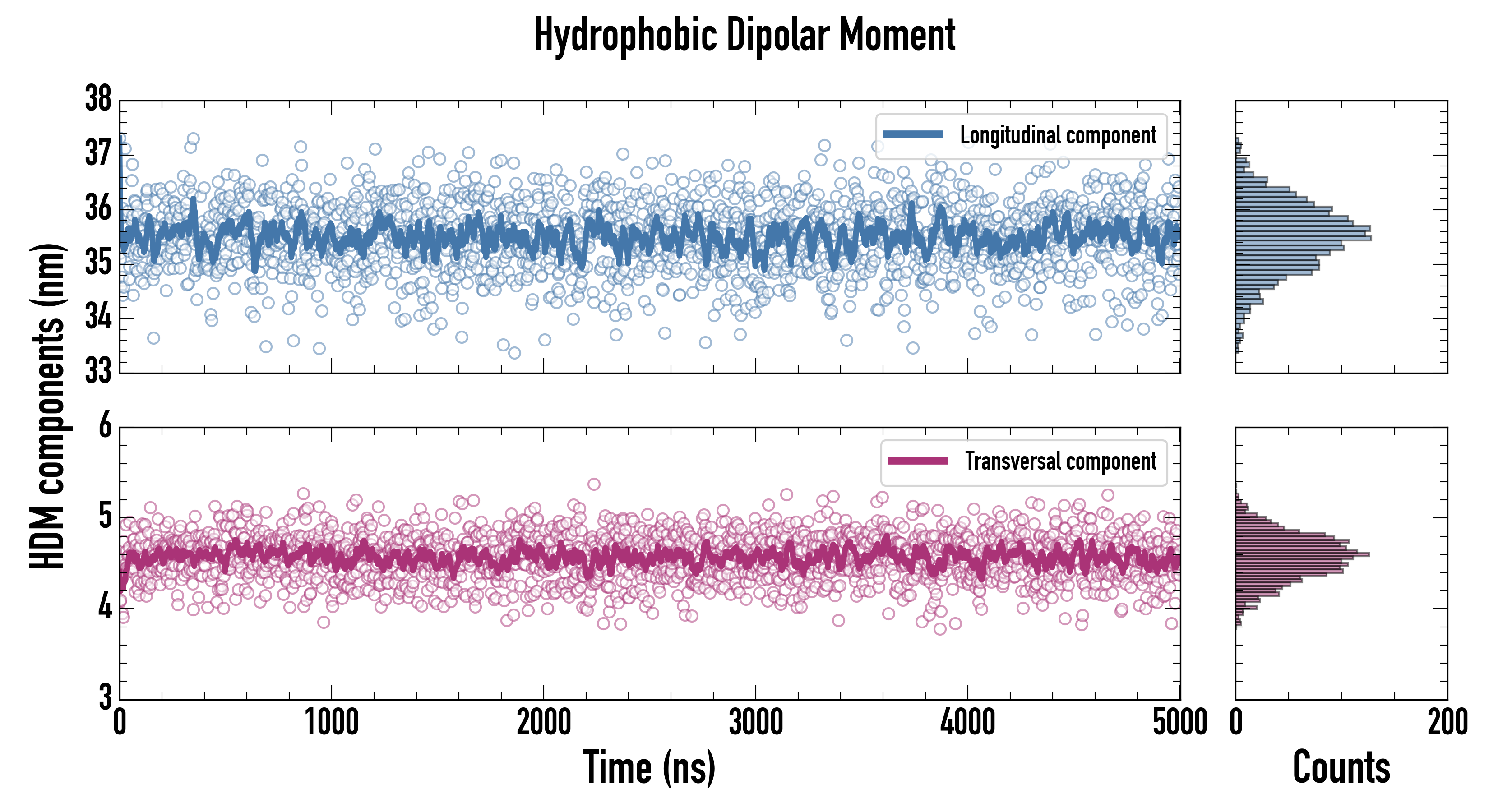 Longitudinal (e nm): 1.64 Transversal (e nm): 0.19 Hydrophobic Dipolar Moment (nm): 37.5