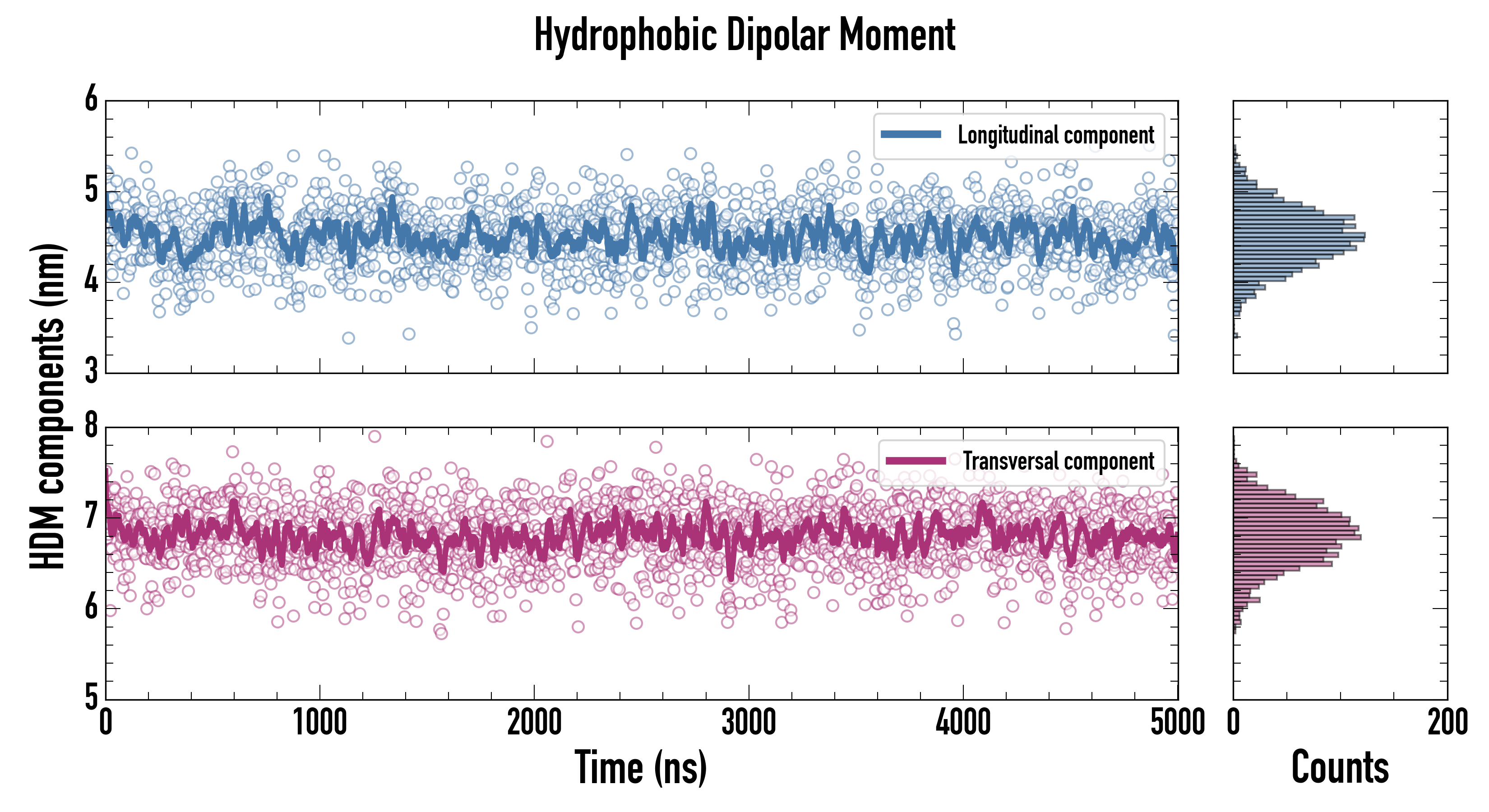 Longitudinal (e nm): 3.13 Transversal (e nm): 1.59 Hydrophobic Dipolar Moment (nm): 8.46