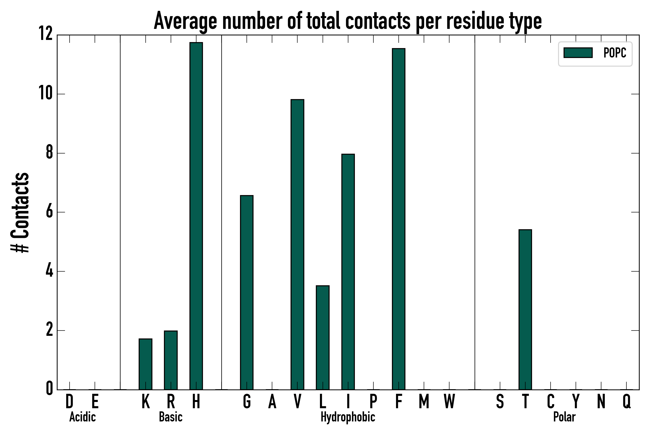 Number of total contacts per residue type: