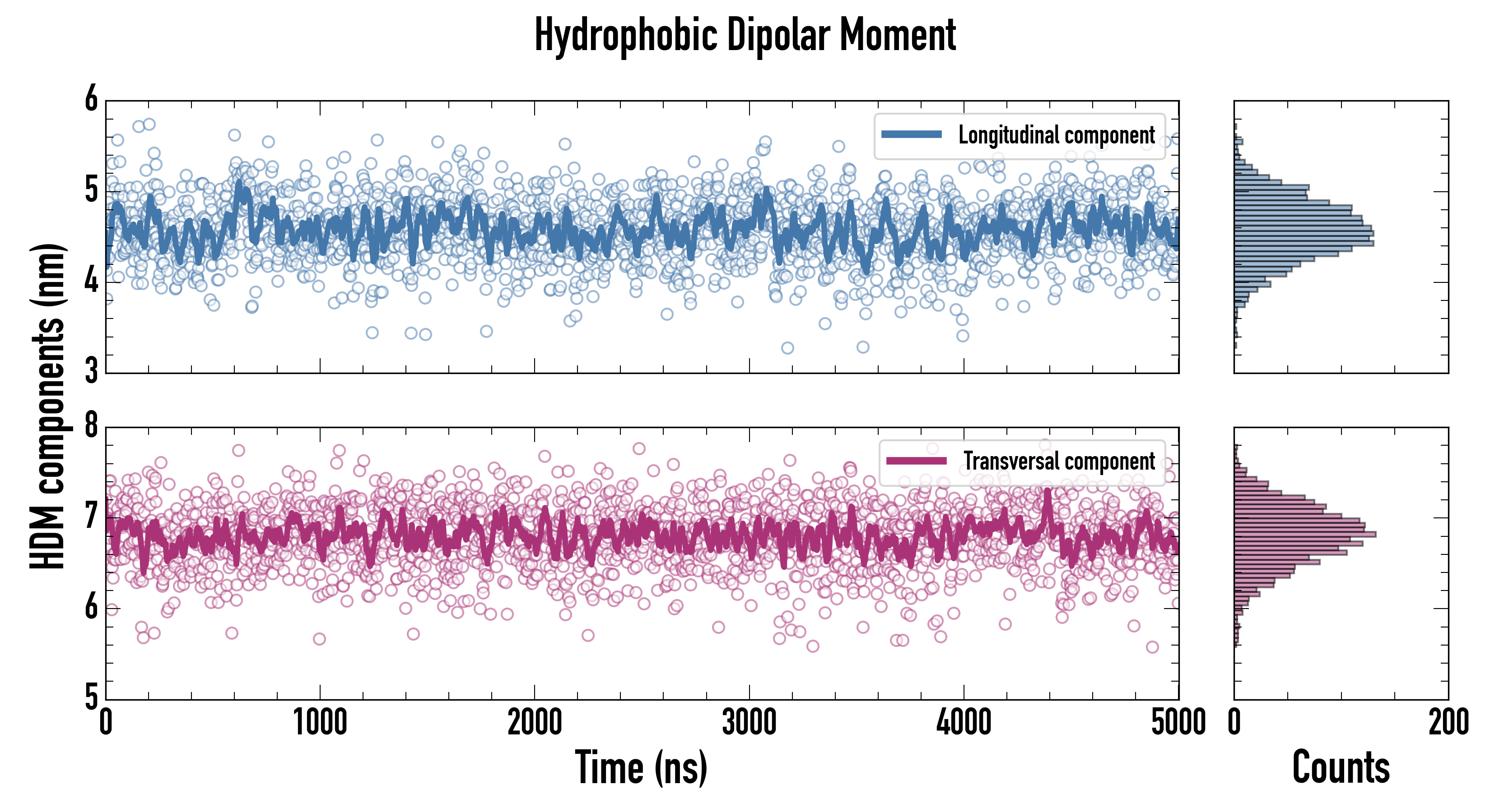 Longitudinal (e nm): 3.13 Transversal (e nm): 1.59 Hydrophobic Dipolar Moment (nm): 8.46