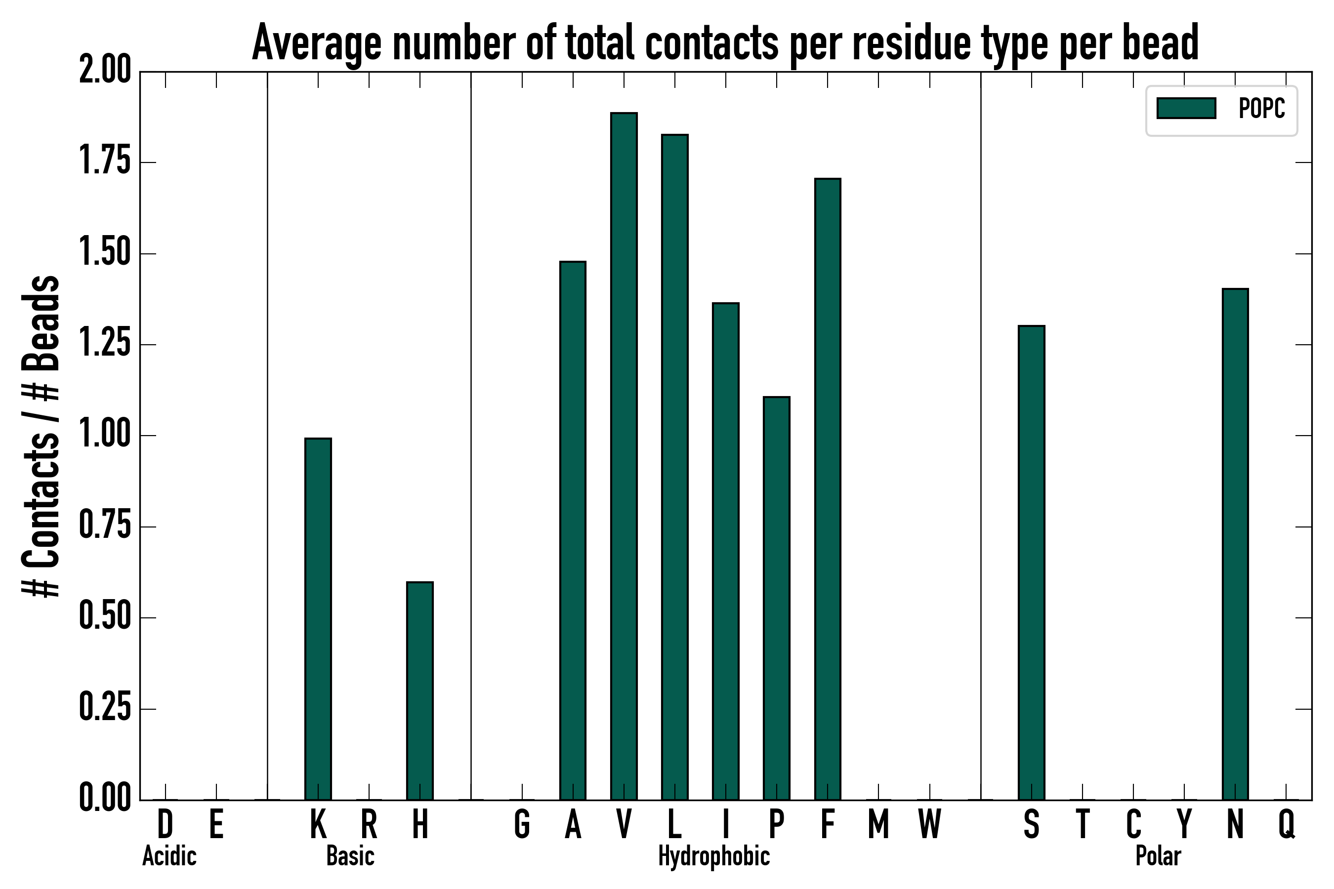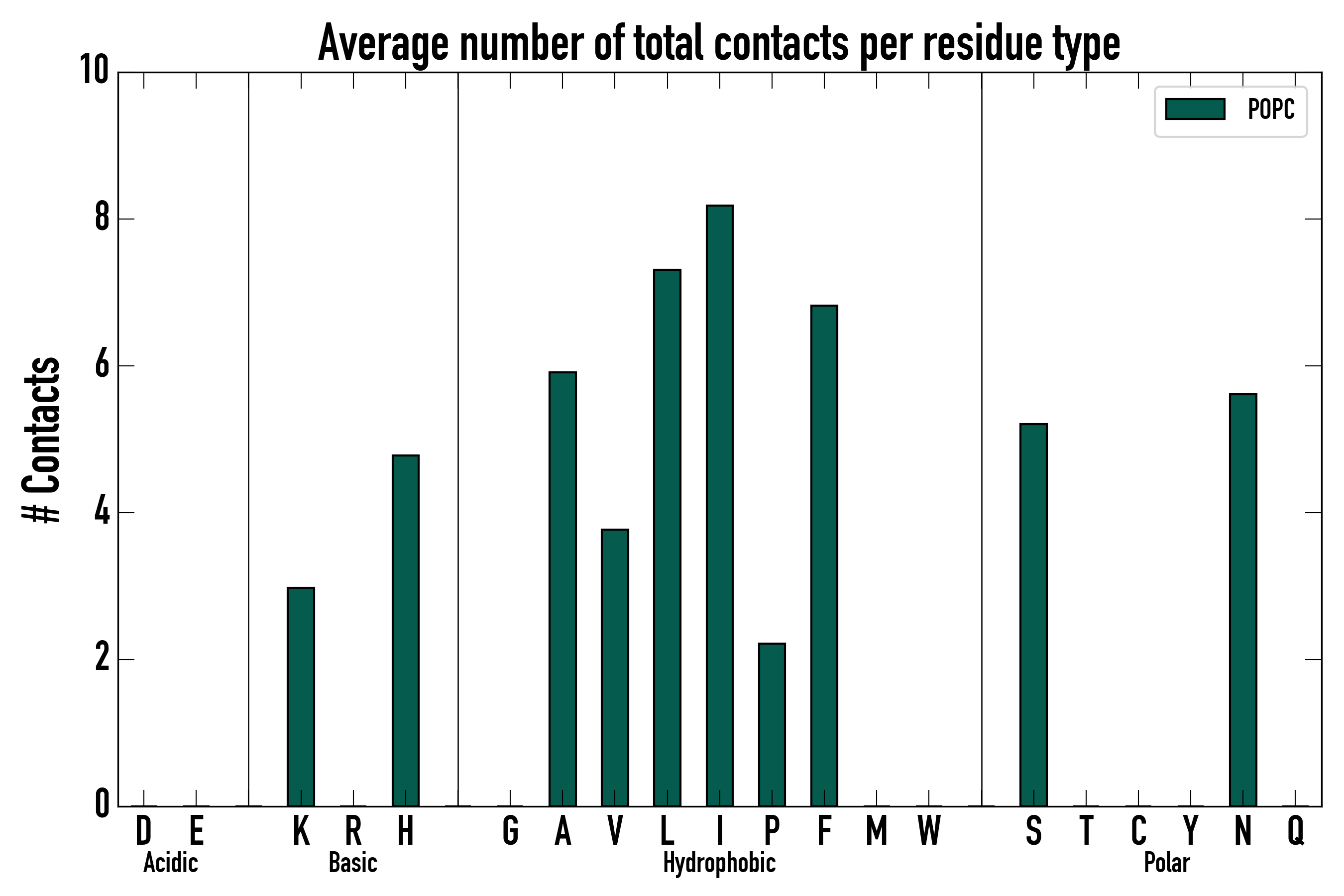 Number of total contacts per residue type: