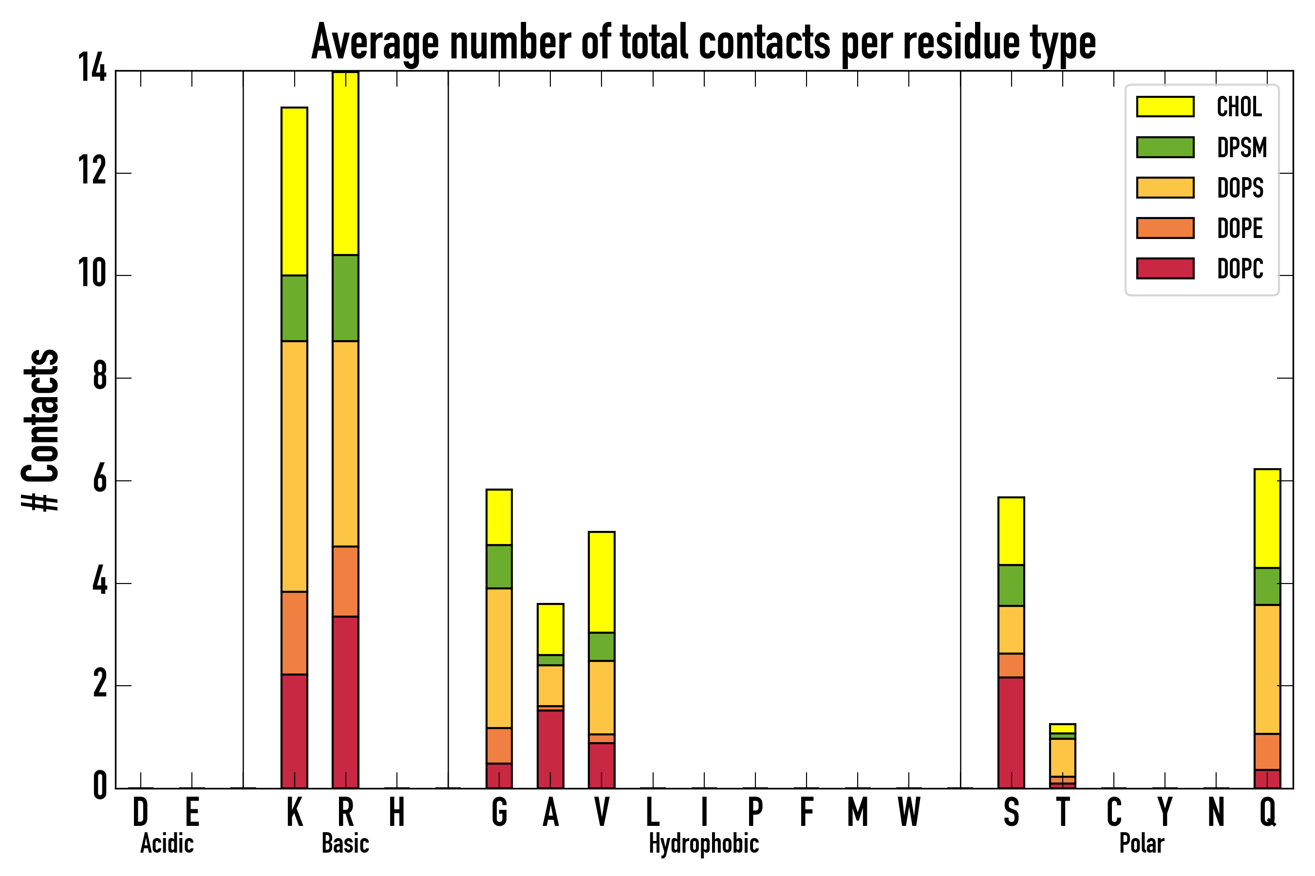 Number of total contacts per residue type: