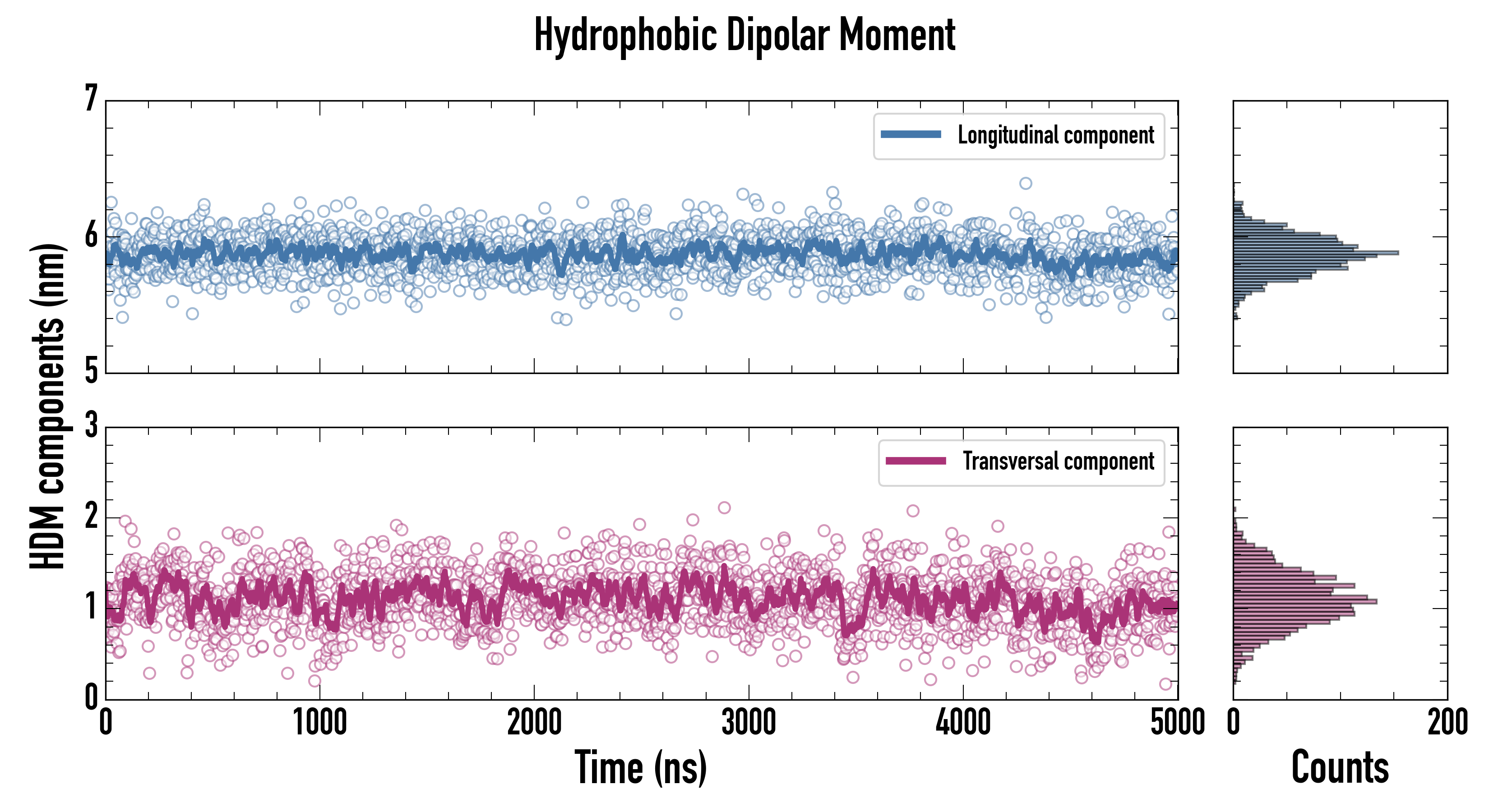 Longitudinal (e nm): 6.75 Transversal (e nm): 0.14 Hydrophobic Dipolar Moment (nm): 5.95