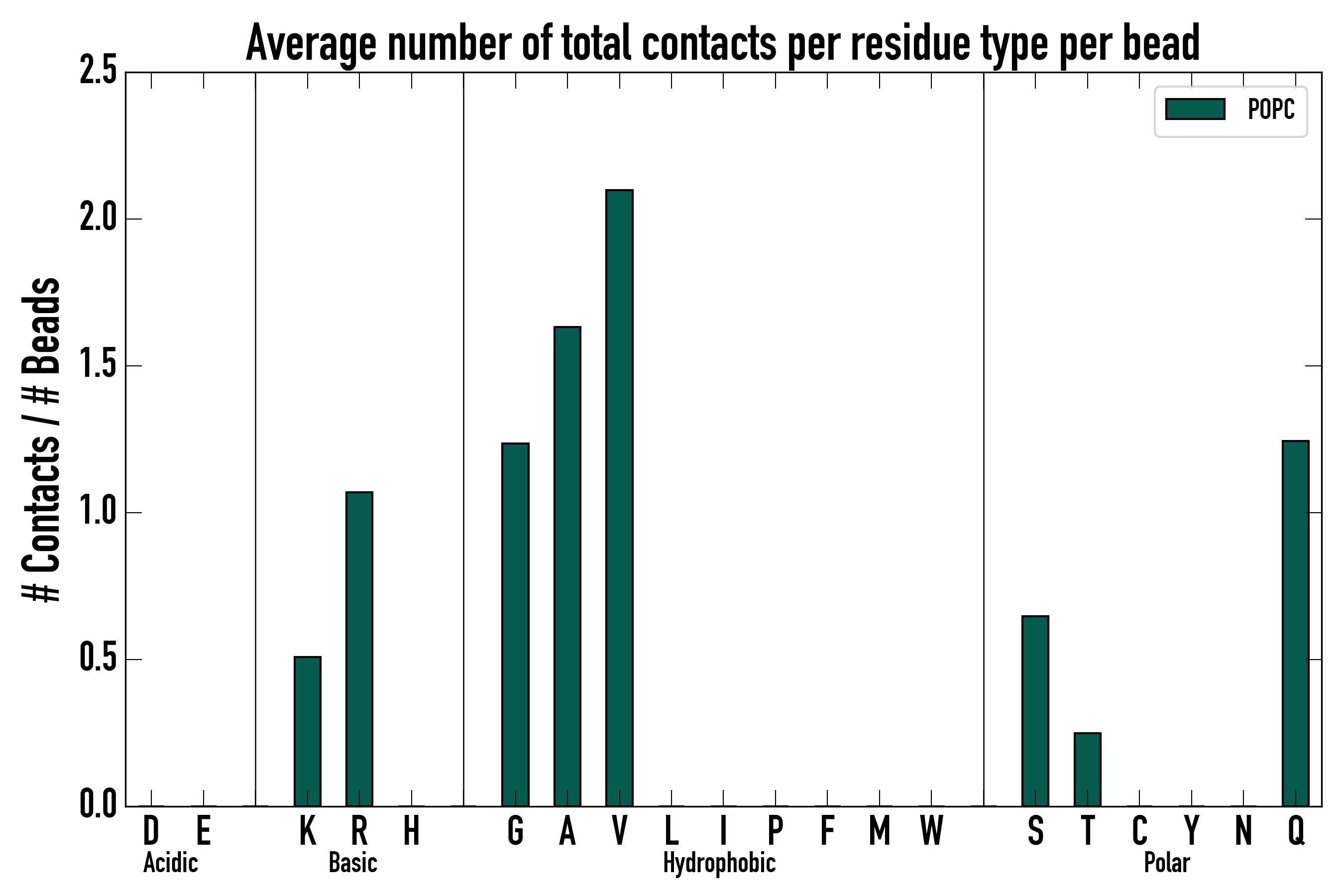 Number of total contacts per residue type: