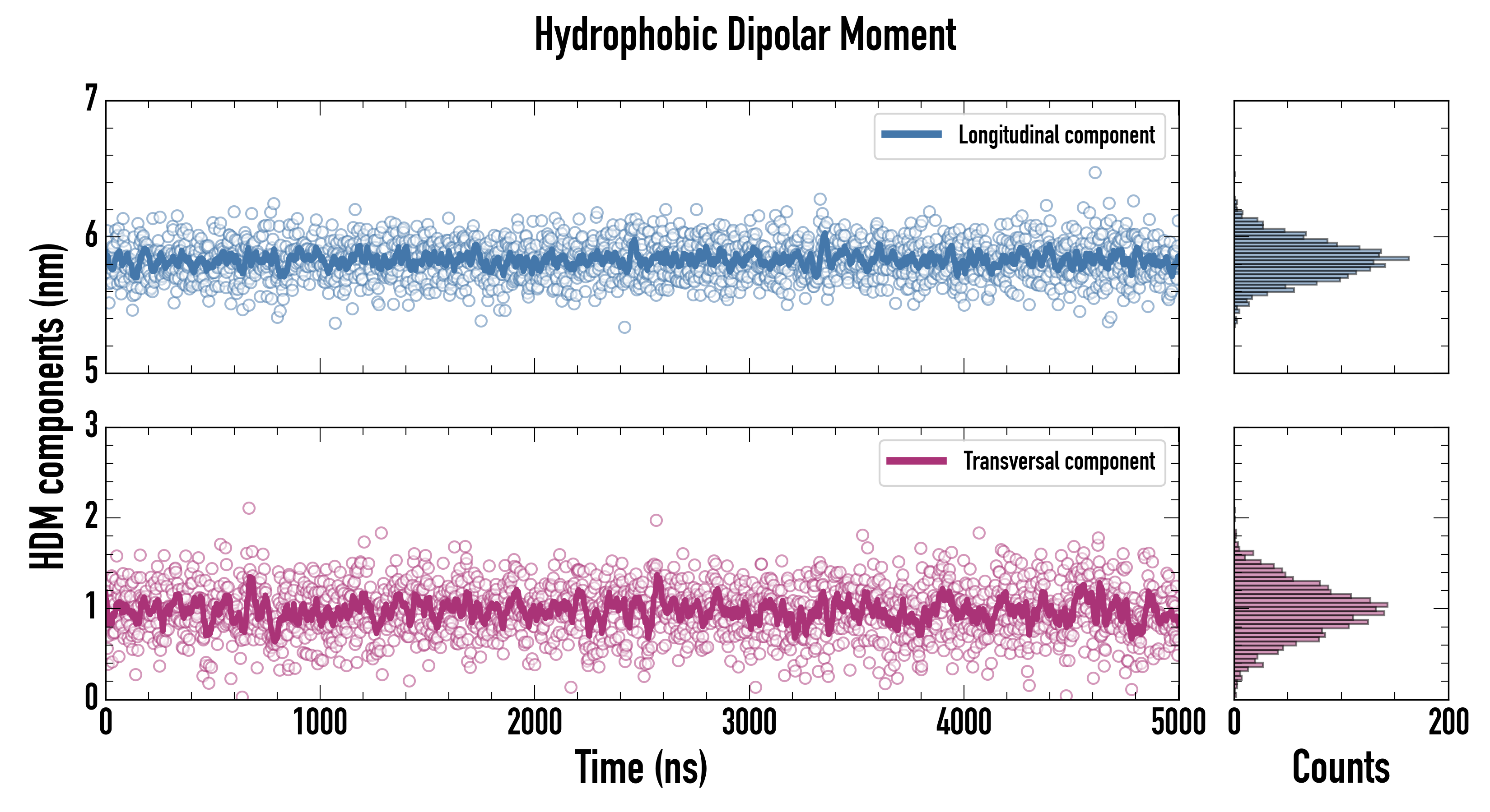 Longitudinal (e nm): 6.75 Transversal (e nm): 0.14 Hydrophobic Dipolar Moment (nm): 5.95
