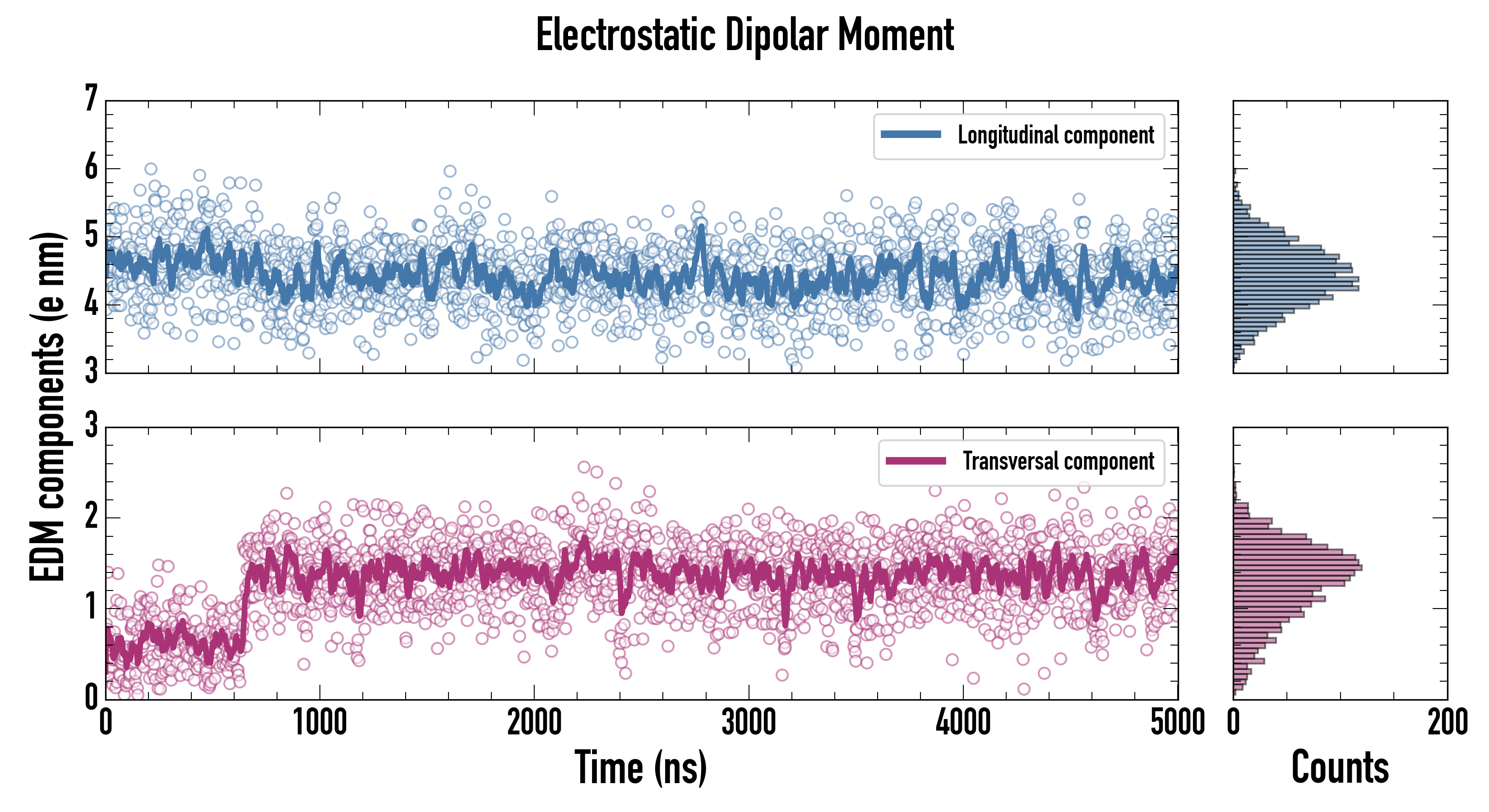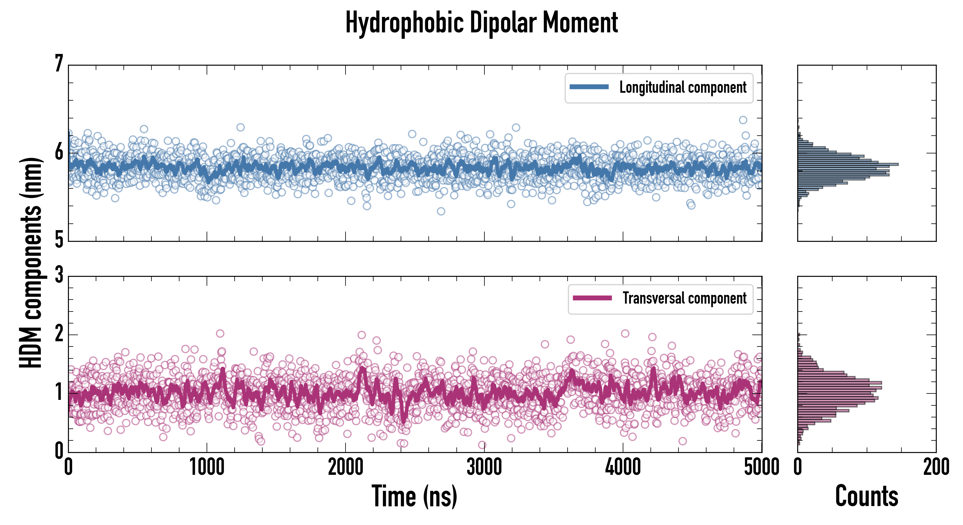 Longitudinal (e nm): 6.75 Transversal (e nm): 0.14 Hydrophobic Dipolar Moment (nm): 5.95