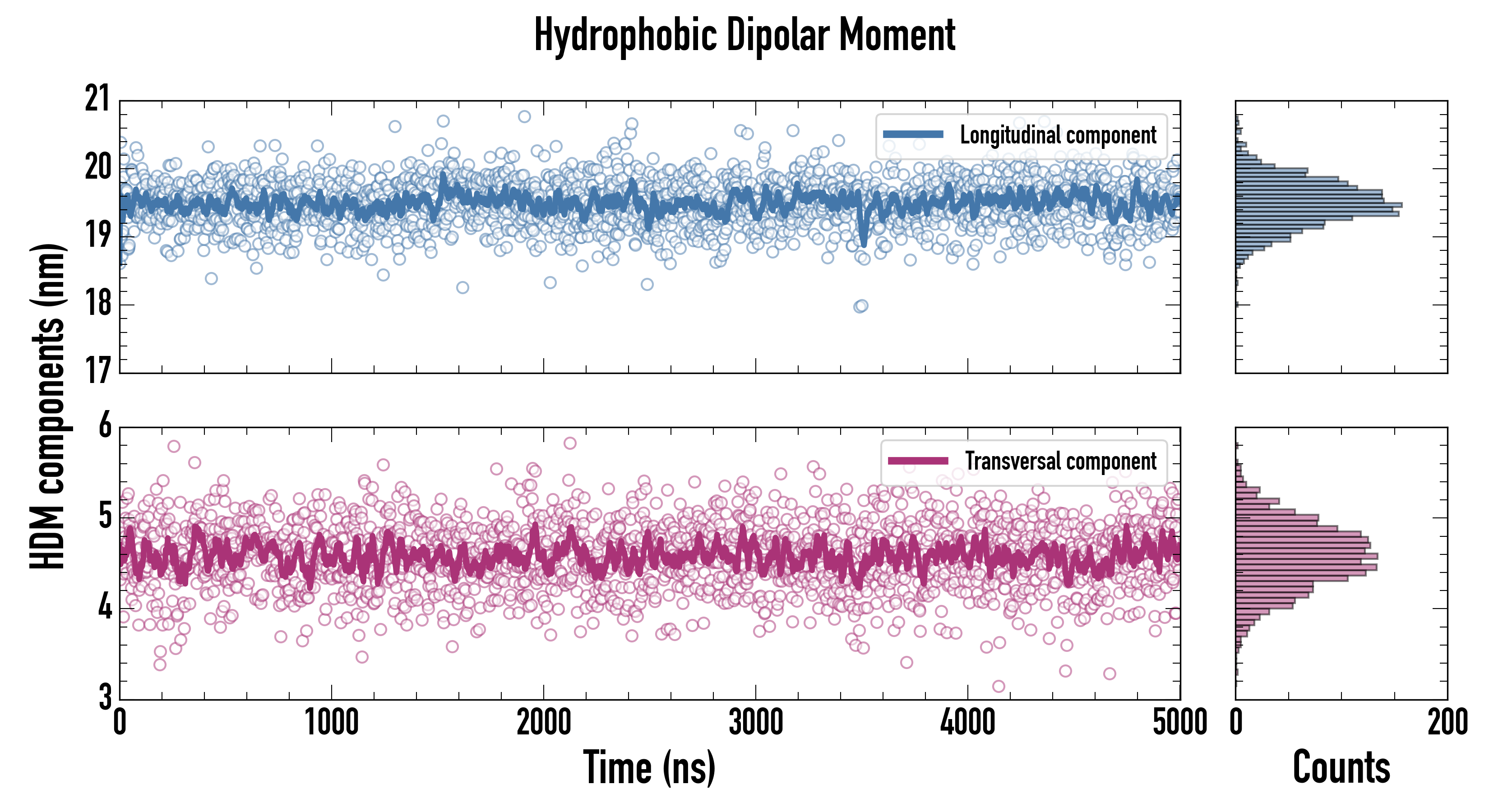 Longitudinal (e nm): 2.08 Transversal (e nm): 0.64 Hydrophobic Dipolar Moment (nm): 20.7