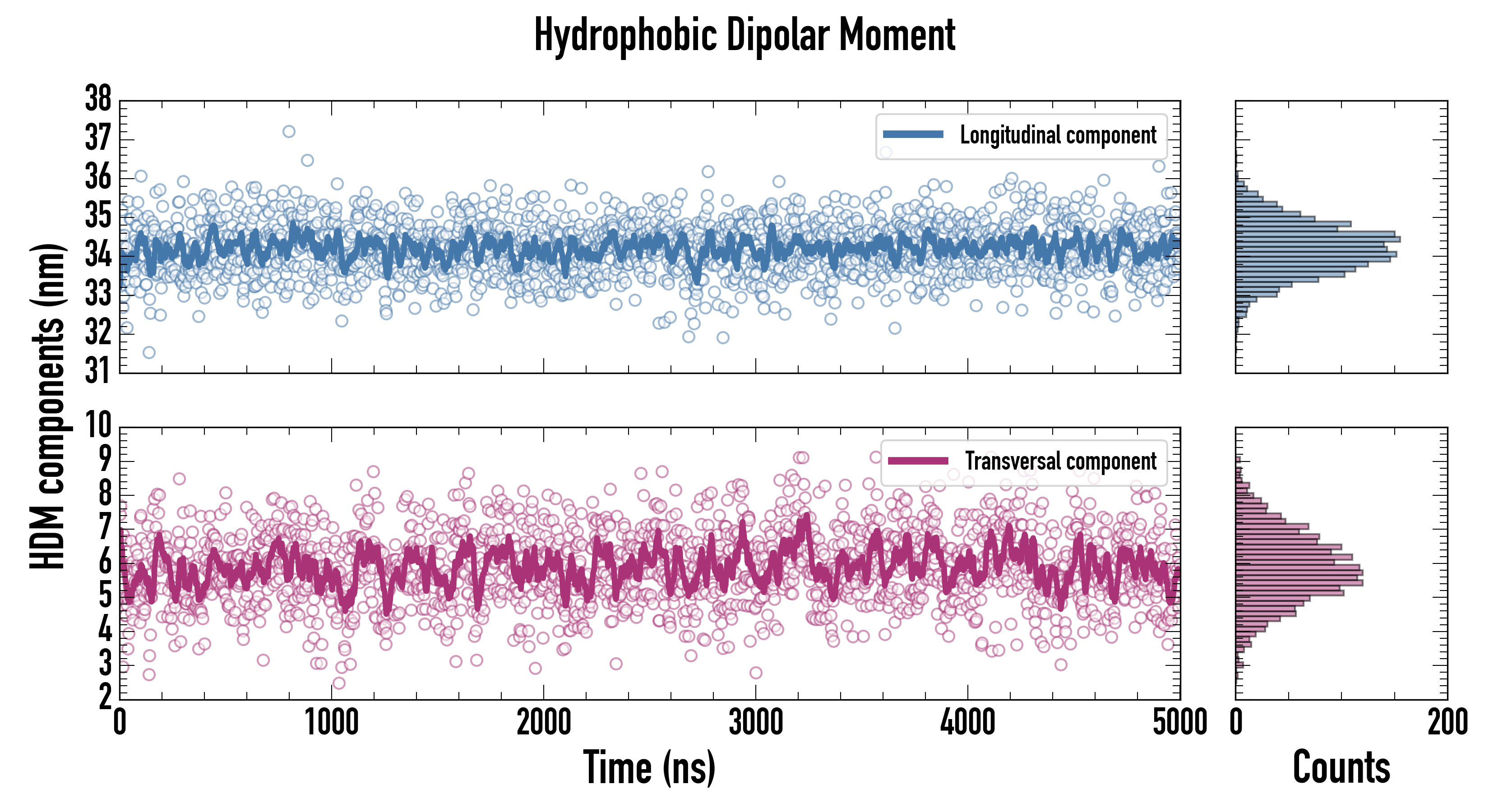 Longitudinal (e nm): 12.4 Transversal (e nm): 2.07 Hydrophobic Dipolar Moment (nm): 35.6