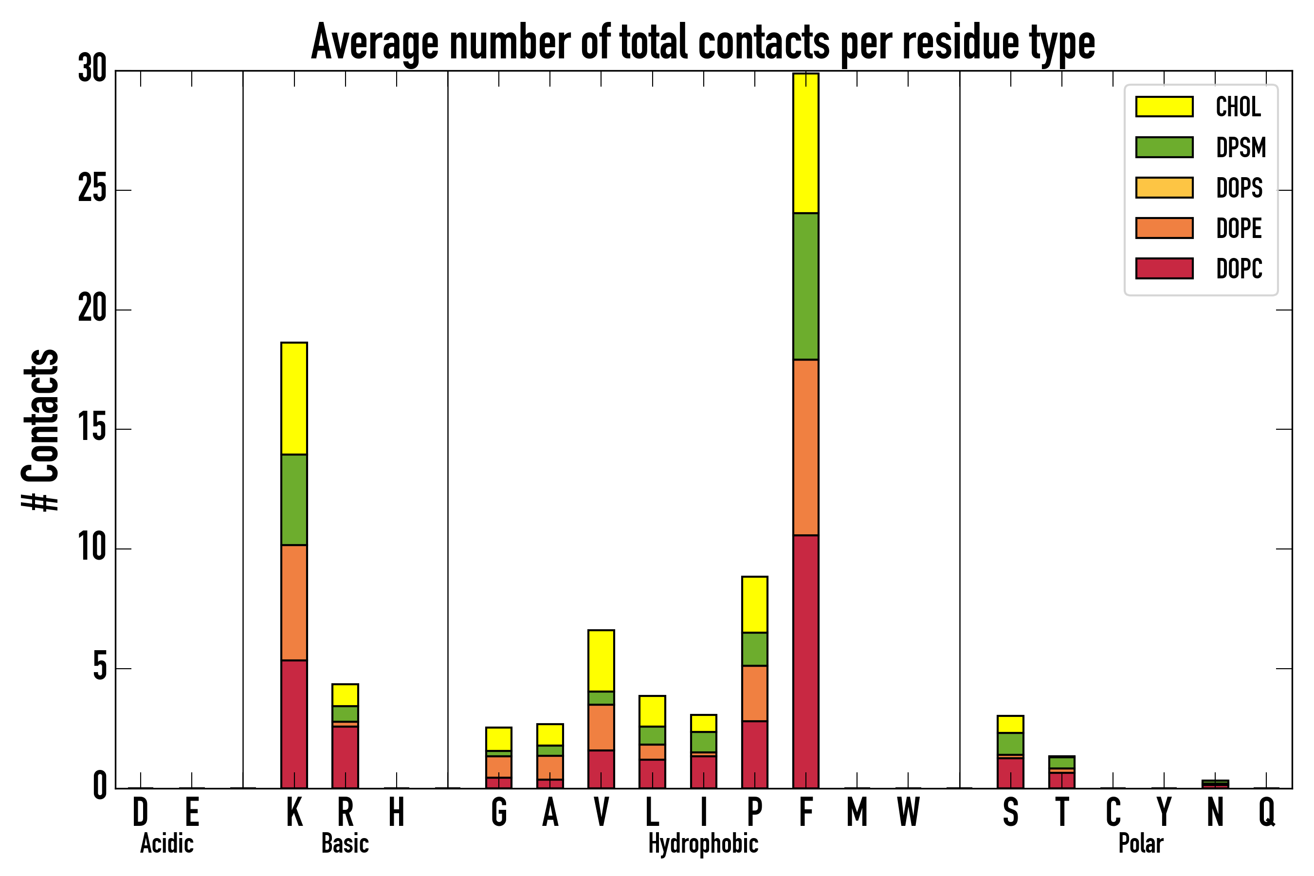 Number of total contacts per residue type: