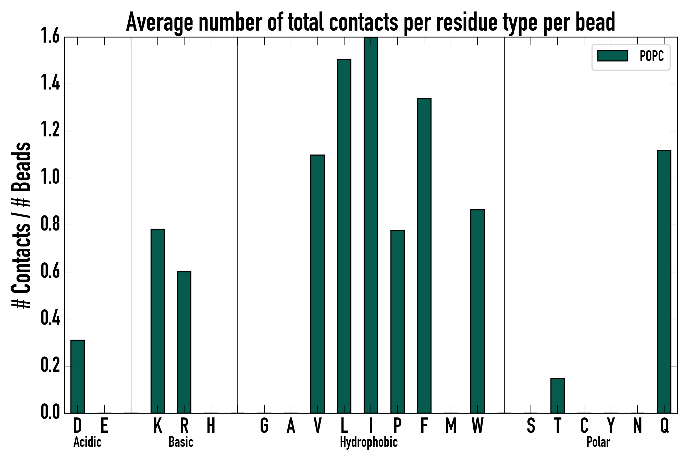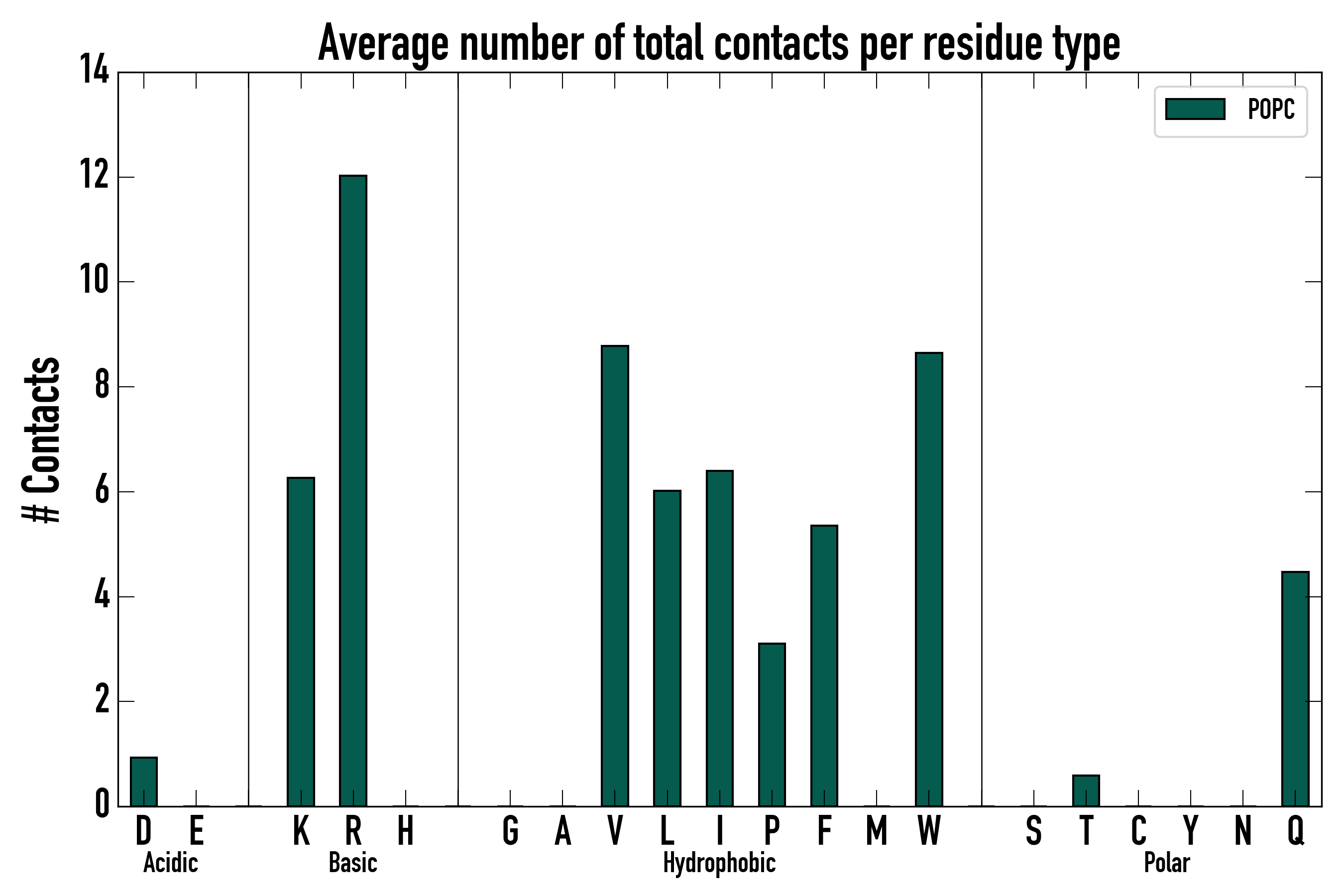 Number of total contacts per residue type: