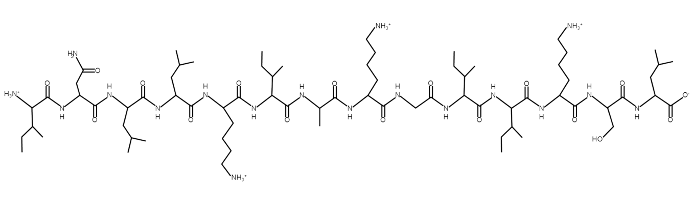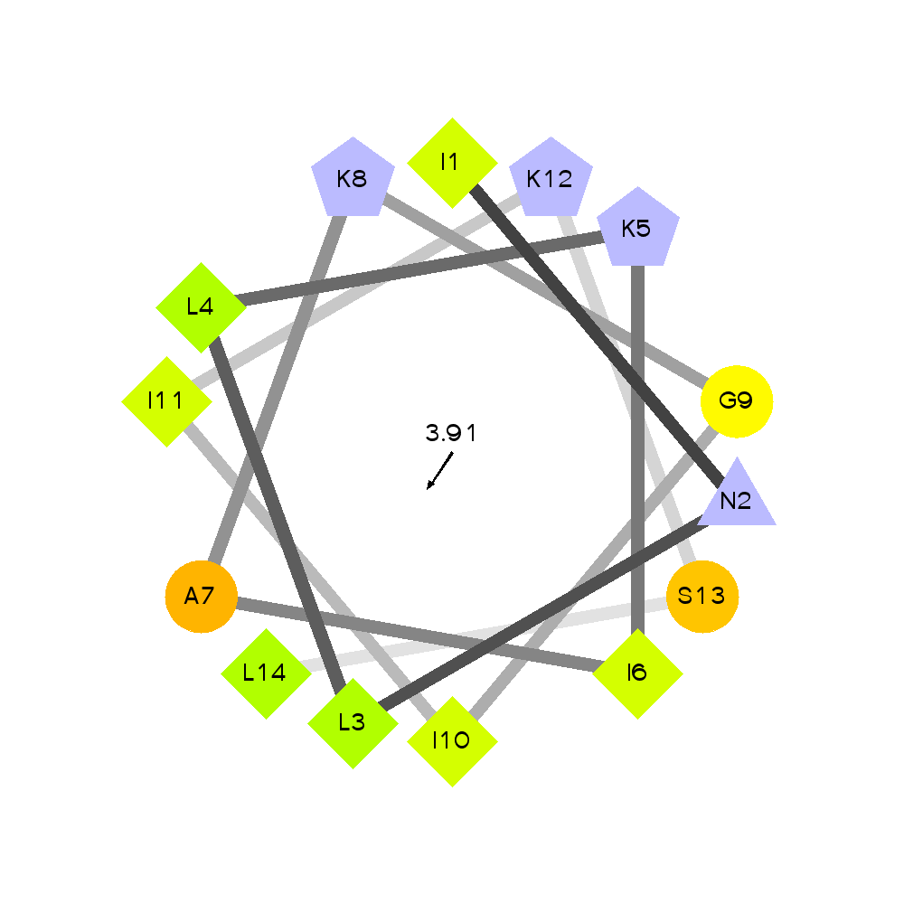 By amino acid: Basic: 3 Acidic: 0 Hydrophobic: 9 Polar: 2 Electrostatic Dipolar Moment (e nm): 3.05