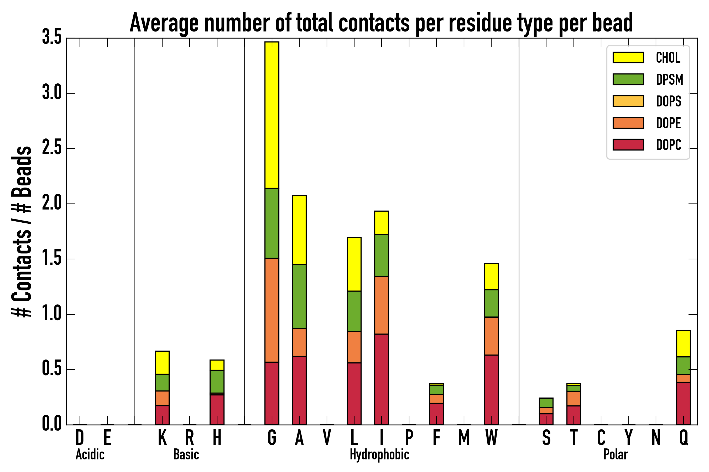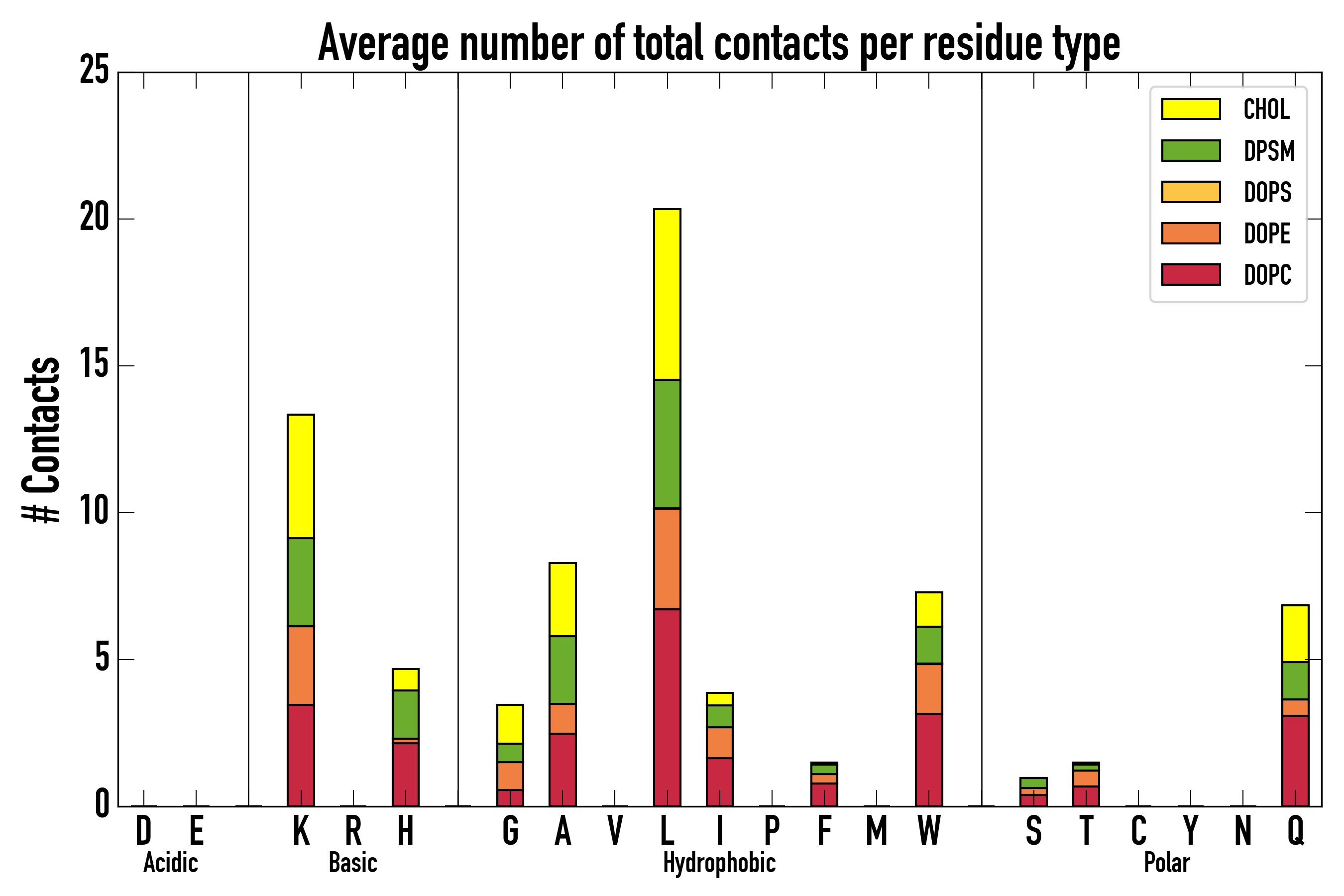 Number of total contacts per residue type: