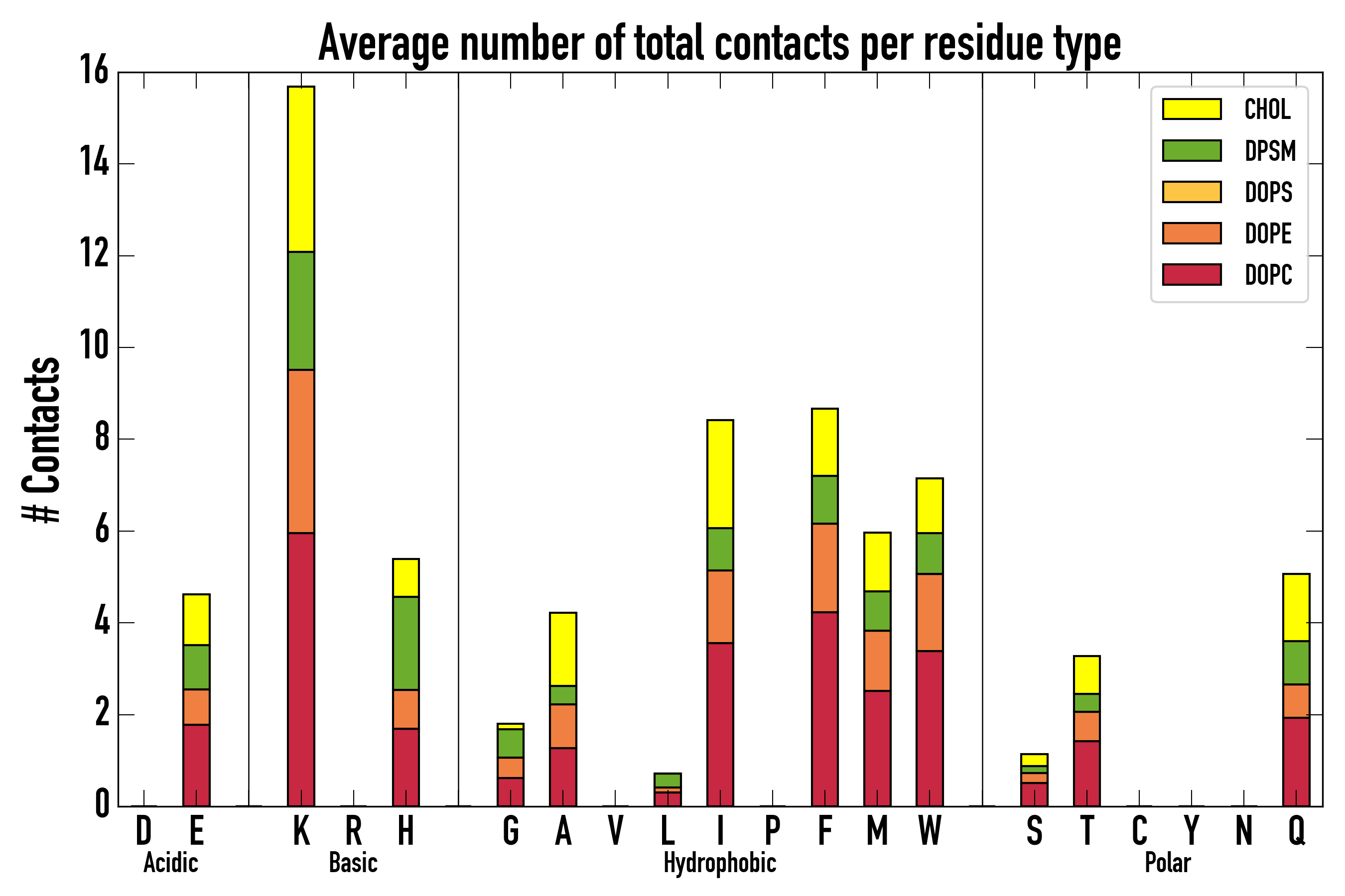 Number of total contacts per residue type: