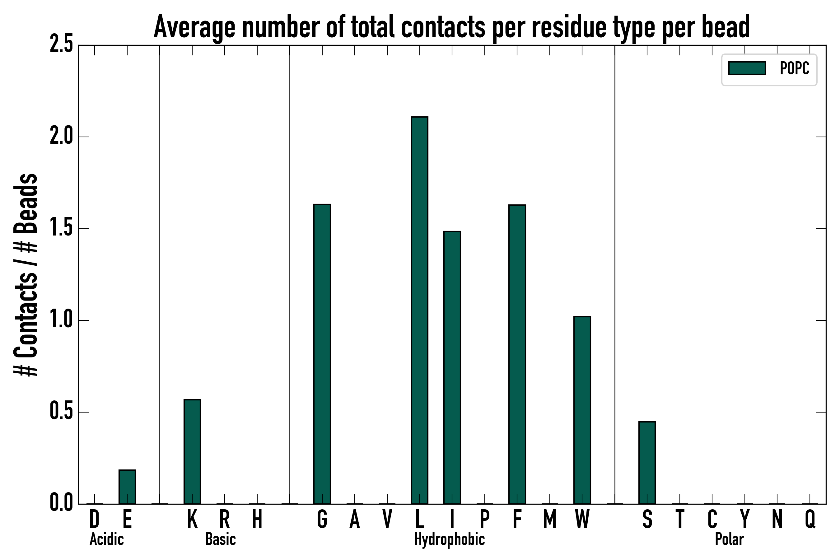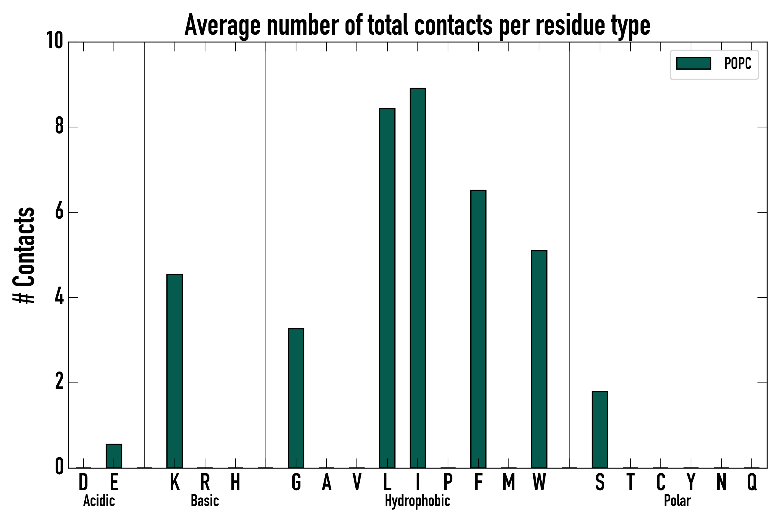 Number of total contacts per residue type: