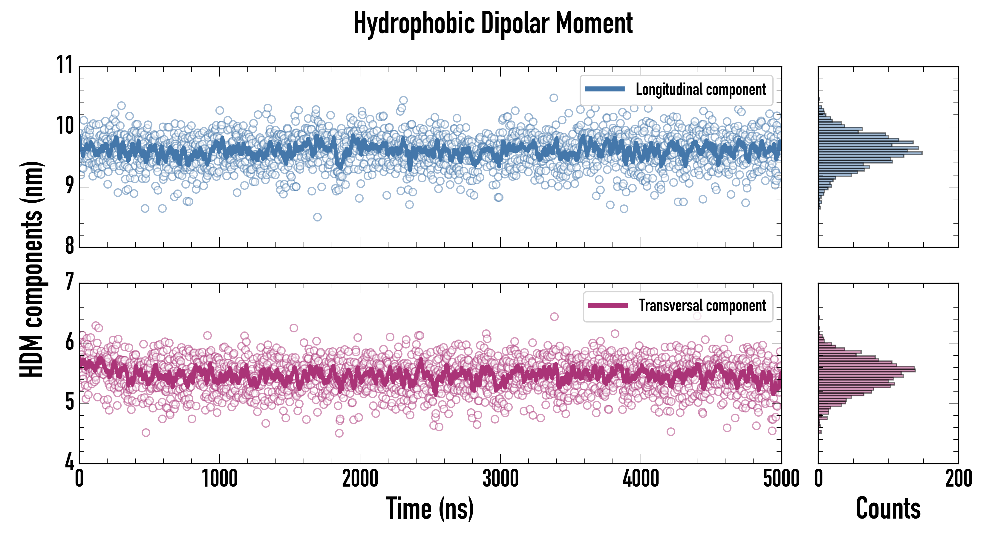 Longitudinal (e nm): 2.94 Transversal (e nm): 0 Hydrophobic Dipolar Moment (nm): 11.5