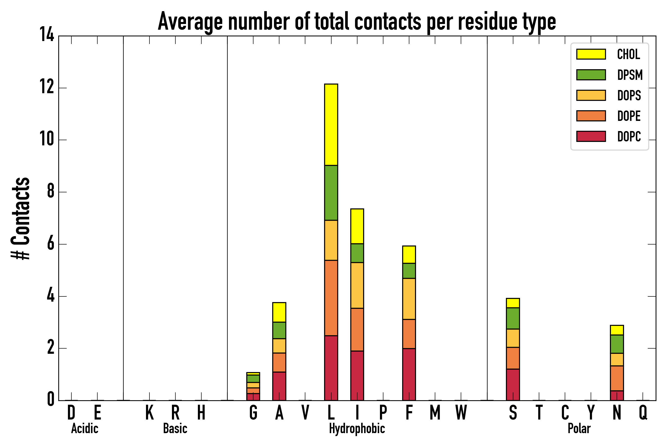 Number of total contacts per residue type: