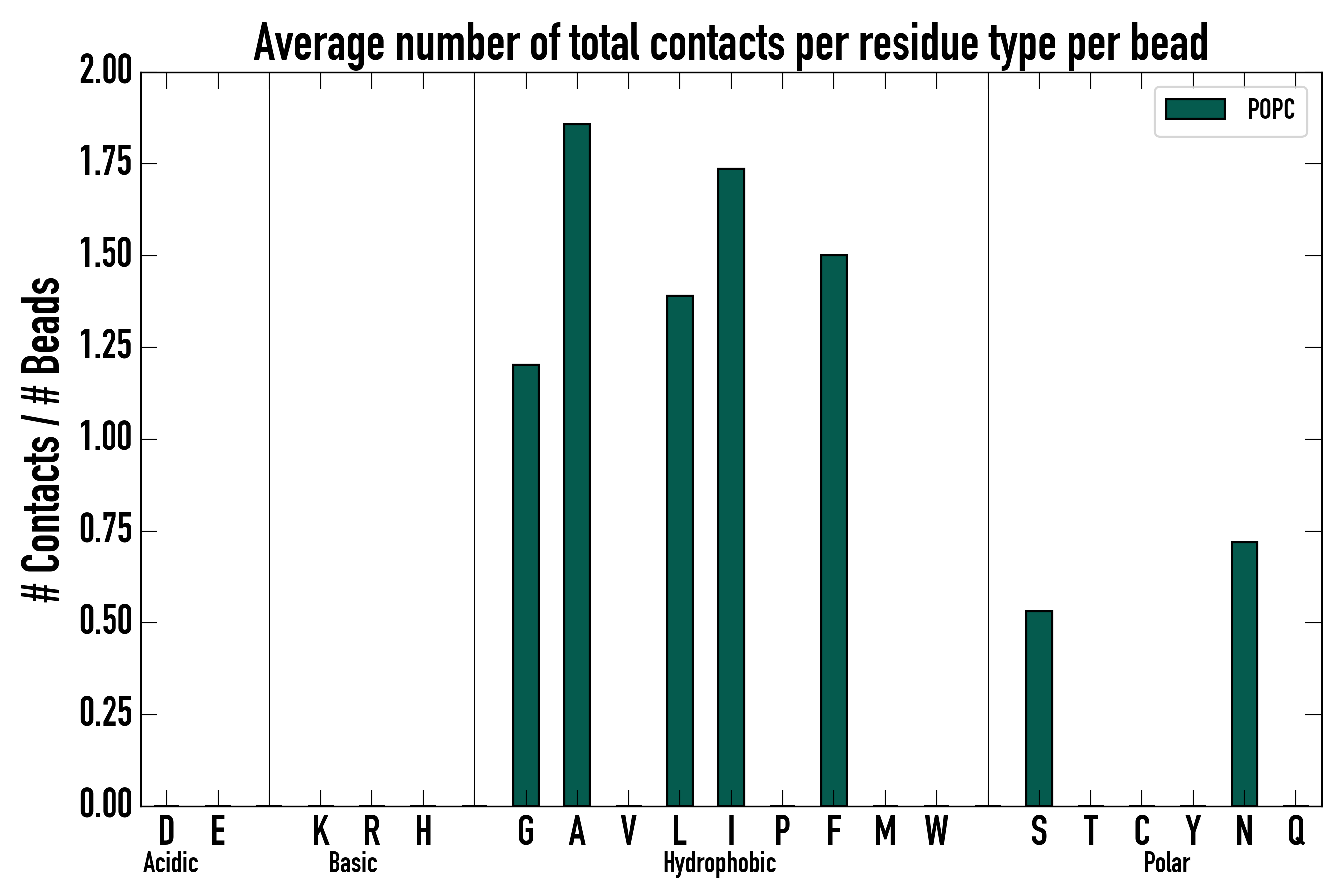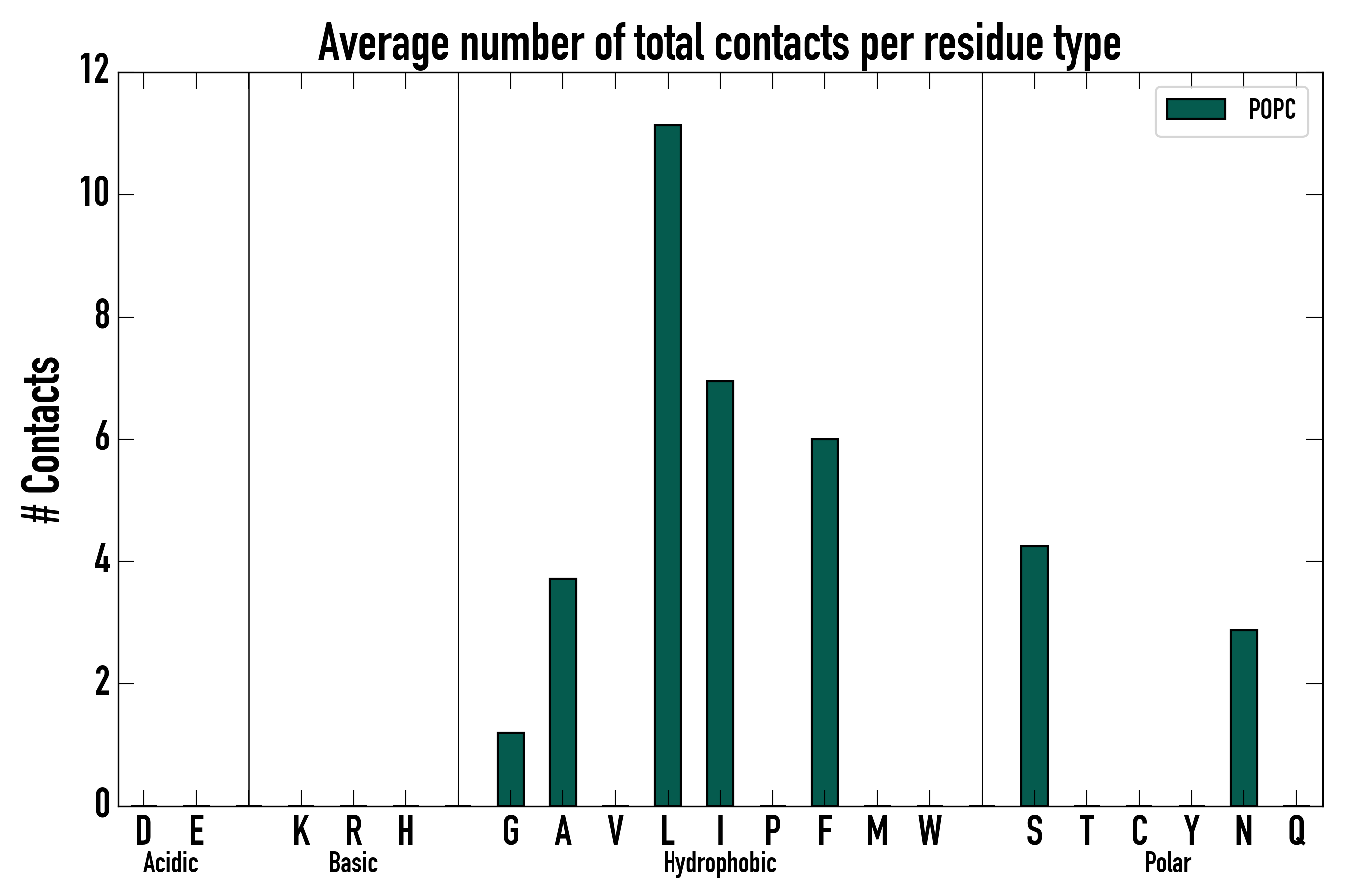 Number of total contacts per residue type: