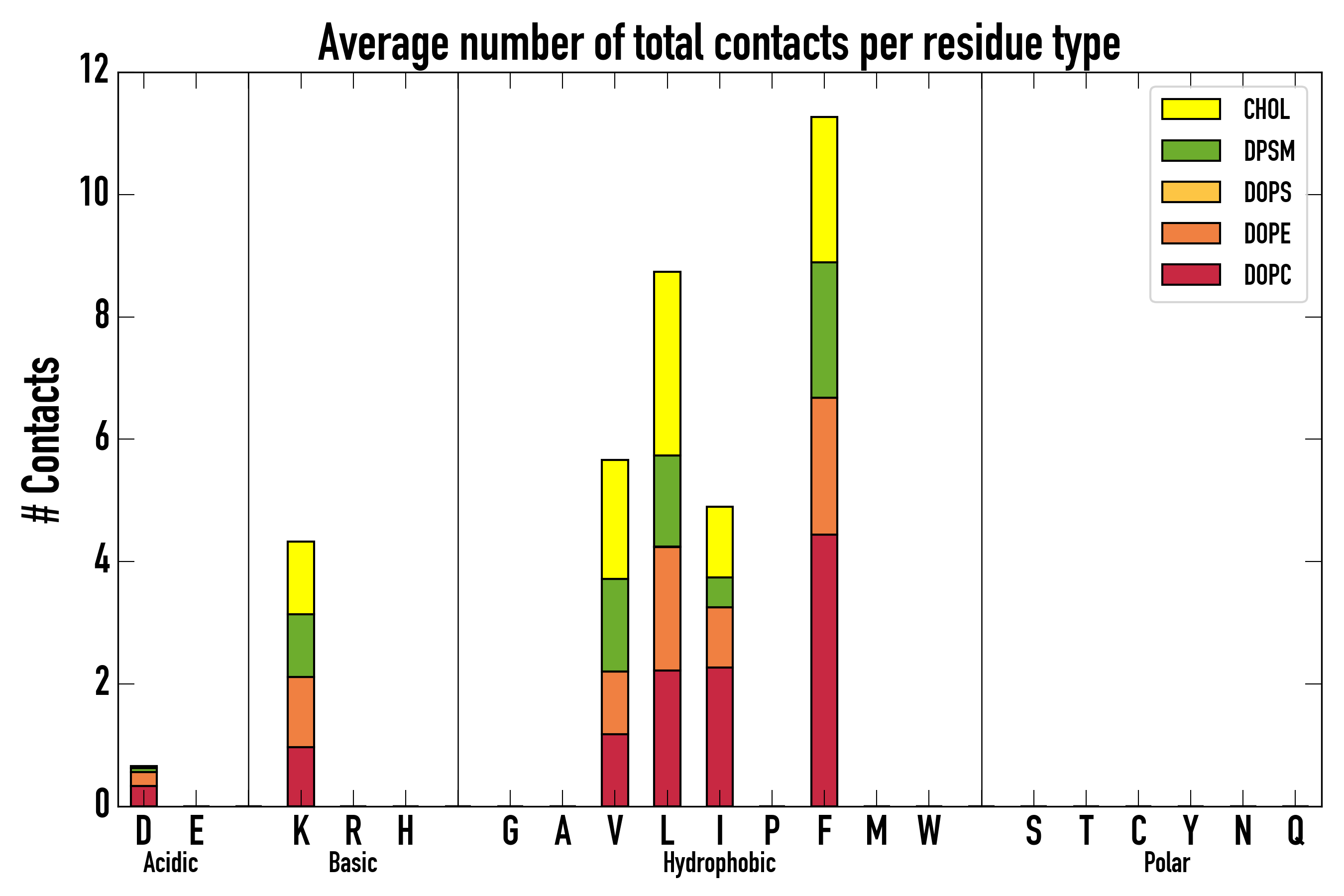 Number of total contacts per residue type: