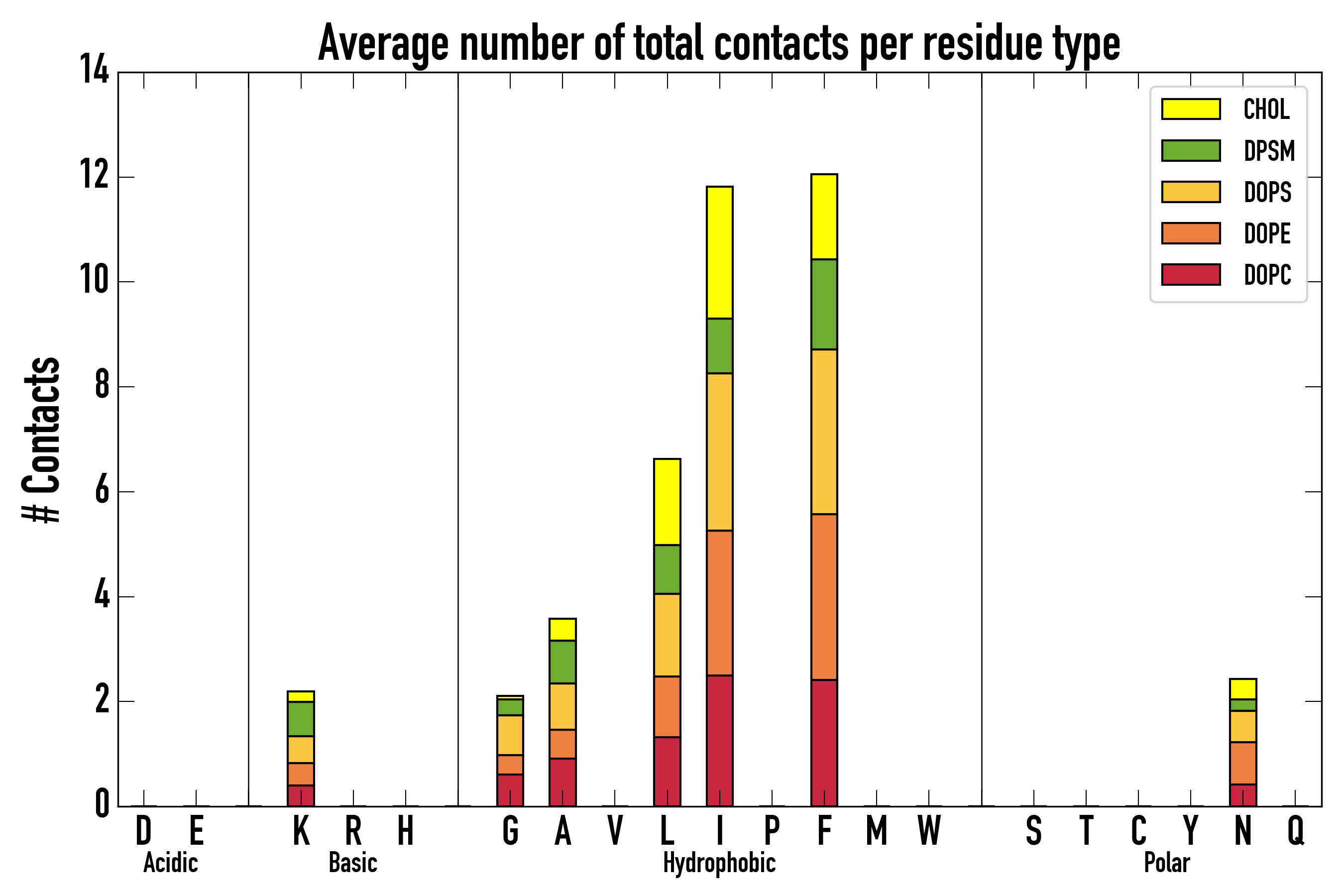 Number of total contacts per residue type: