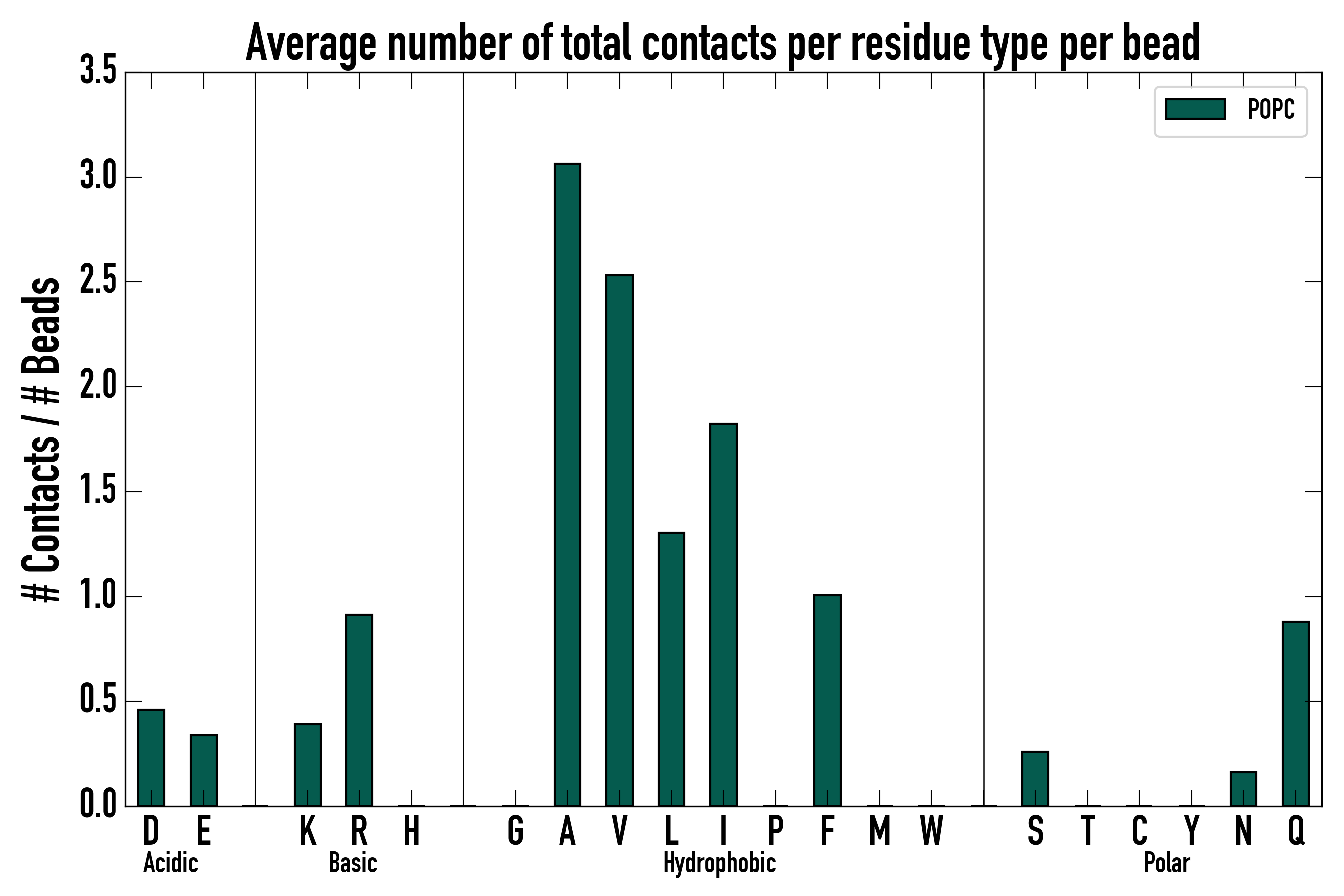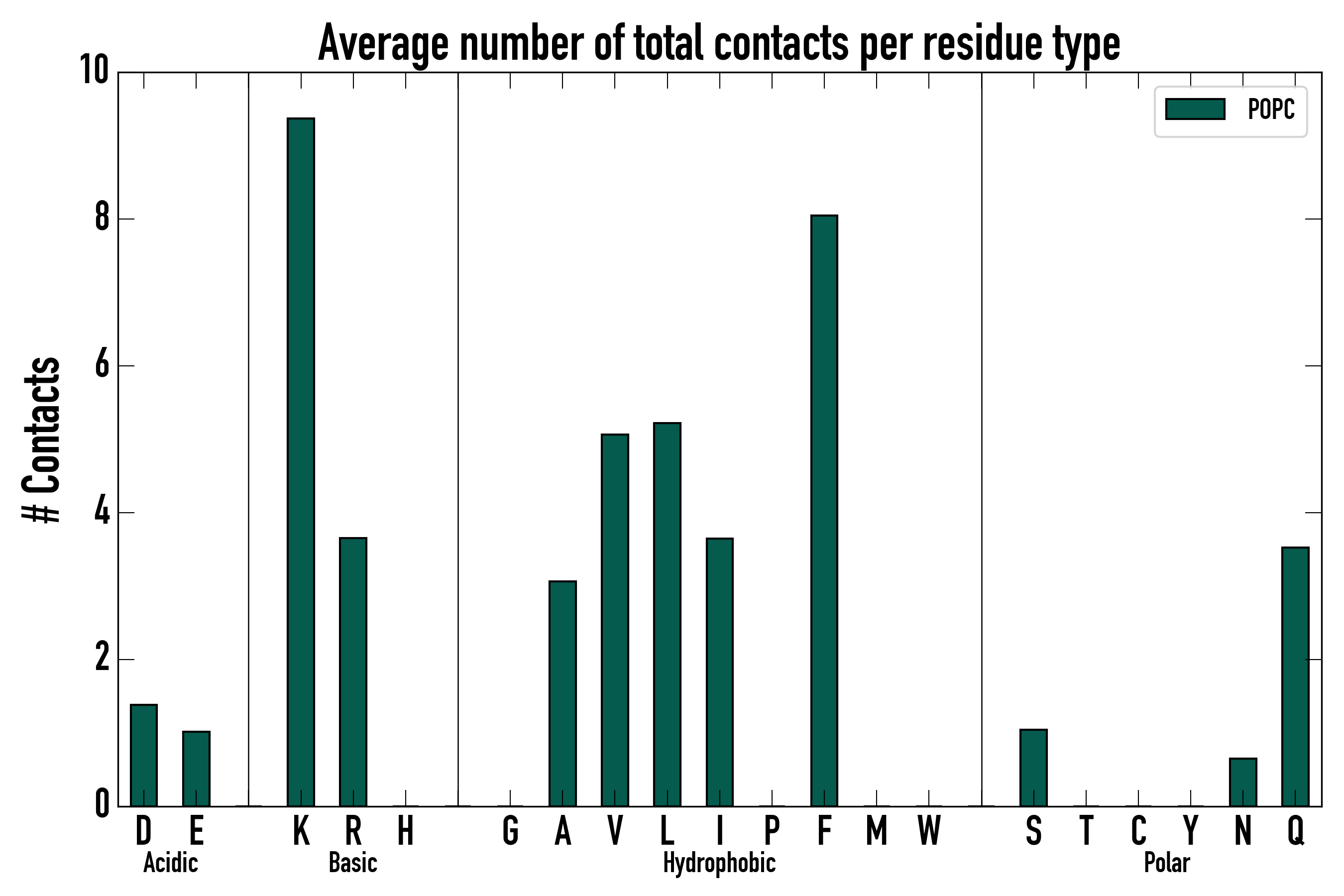 Number of total contacts per residue type: